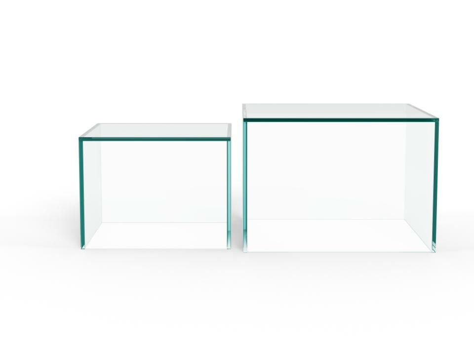 Kwadratowe stoliki kawowe Dice to propozycja dla osób, które lubią minimalistyczny, nowoczesny design i chcą optycznie odciążyć przestrzeń. Transparentne szkło hartowane sprawia, że nawet w małym salonie ława kawowa nie przytłacza wnętrza, a podłoga i dywan pozostają dobrze widoczne. Zestaw świetnie sprawdzi się przy sofie narożnej, lekkiej kanapie lub w strefie wypoczynkowej typu open space.
