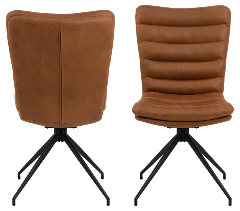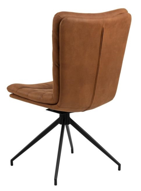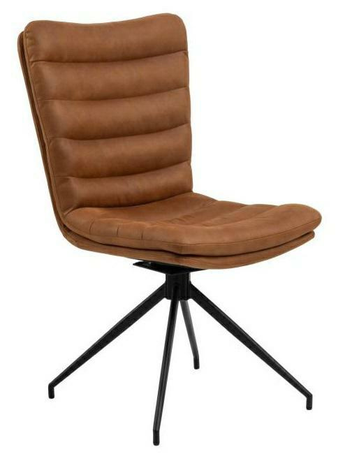 Krzesło obrotowe Grafton marki Actona to loftowe krzesło tapicerowane do jadalni i salonu, łączące wygodne, wyprofilowane siedzisko z czarną stalową podstawą na 4 nogach. Obite brązową ekoskórą i wyposażone w funkcję obrotu, zapewnia komfort użytkowania przy stole, wyspie kuchennej czy w domowym biurze.