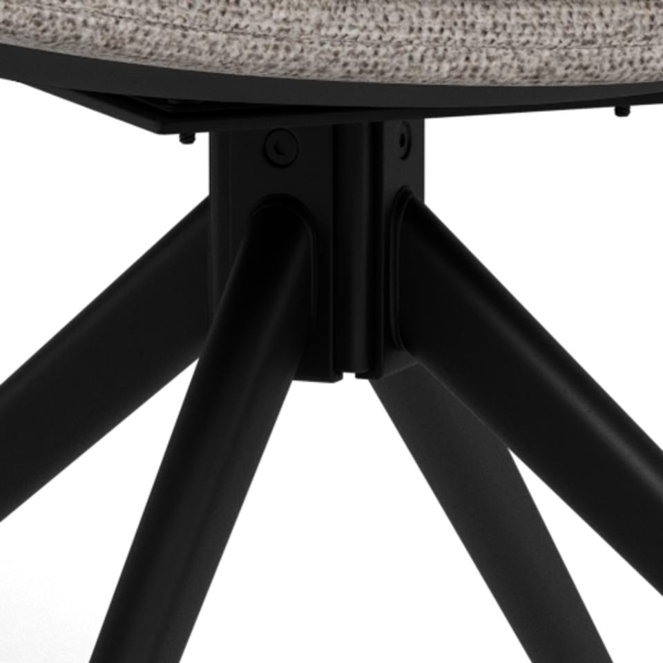 Podstawa z solidnej stali w matowym, czarnym wykończeniu zapewnia wytrzymałość i odporność na codzienne użytkowanie. Stabilne, czteroramienne nogi dobrze znoszą obciążenie i częste obracanie siedziska, co ma znaczenie w tętniącej życiem jadalni czy salonie. Tapicerowane siedzisko zostało zaprojektowane z myślą o łatwej pielęgnacji – regularne odkurzanie i szybka reakcja na ewentualne zabrudzenia pozwolą zachować świeży wygląd krzesła na lata.