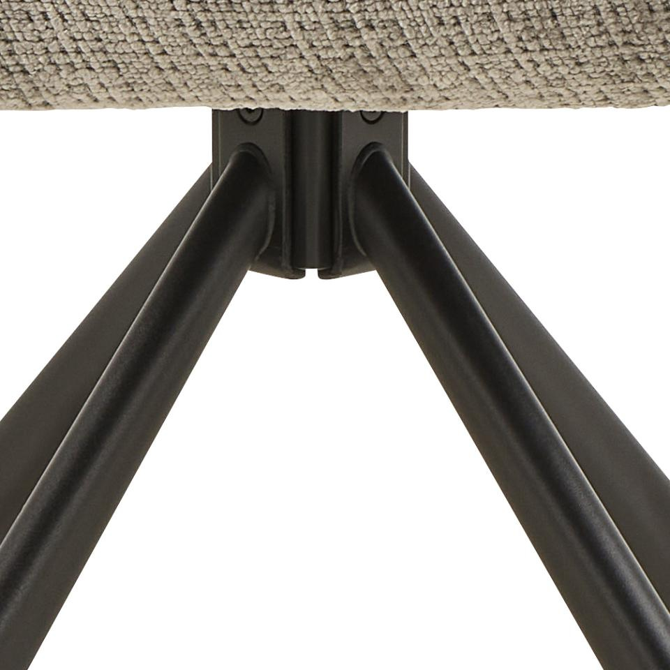 Wbudowana funkcja obrotu sprawia, że nie musisz odsuwać krzesła, aby wstać od stołu czy obrócić się w stronę rozmówcy. To wygodne rozwiązanie szczególnie przy większych stołach, w kuchni otwartej na salon lub w pokoju młodzieżowym, gdzie jedno krzesło często pełni kilka ról naraz. Dzięki stabilnej, 4-nogiej podstawie z matowej, czarnej stali, krzesło zachowuje pewne oparcie nawet przy częstym obracaniu.