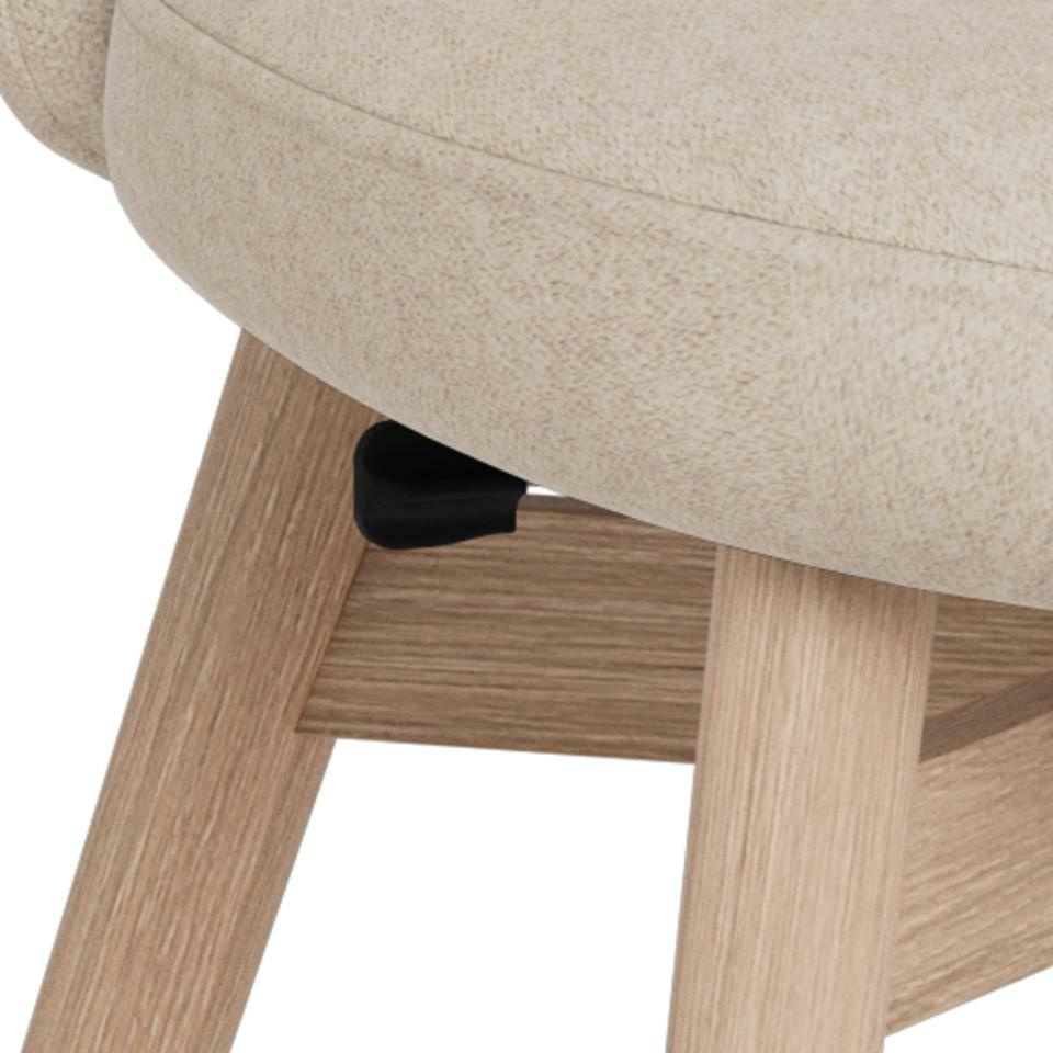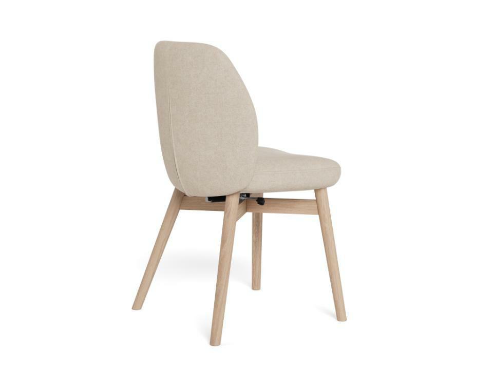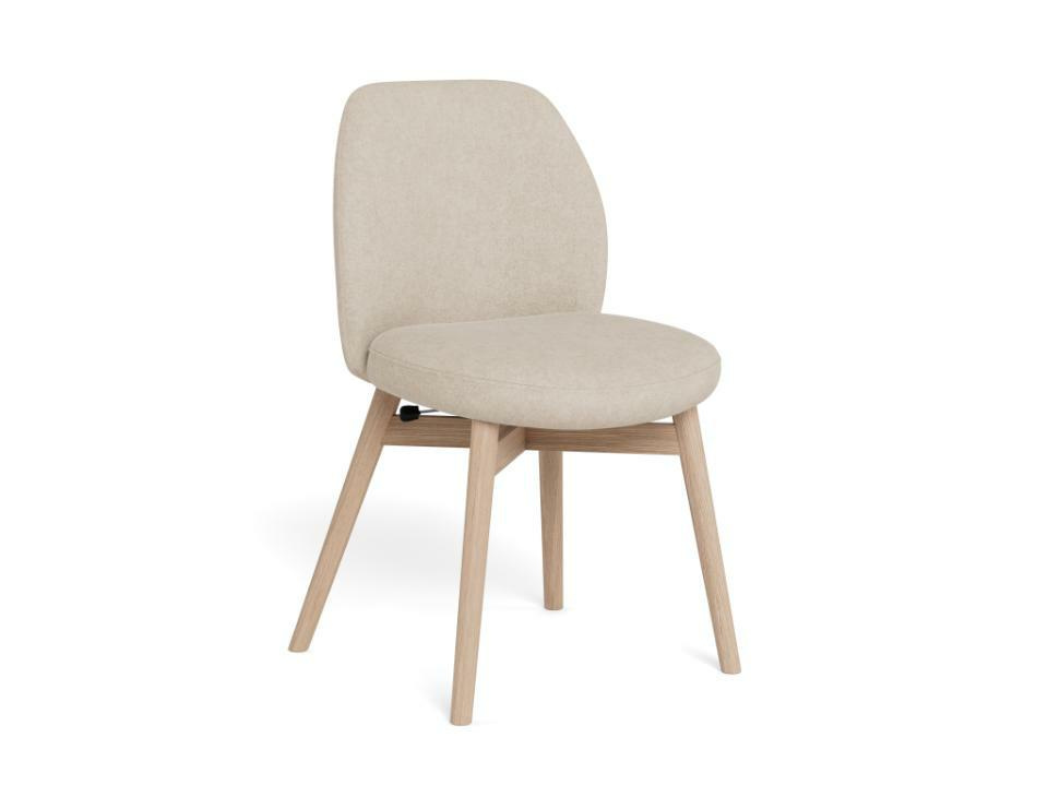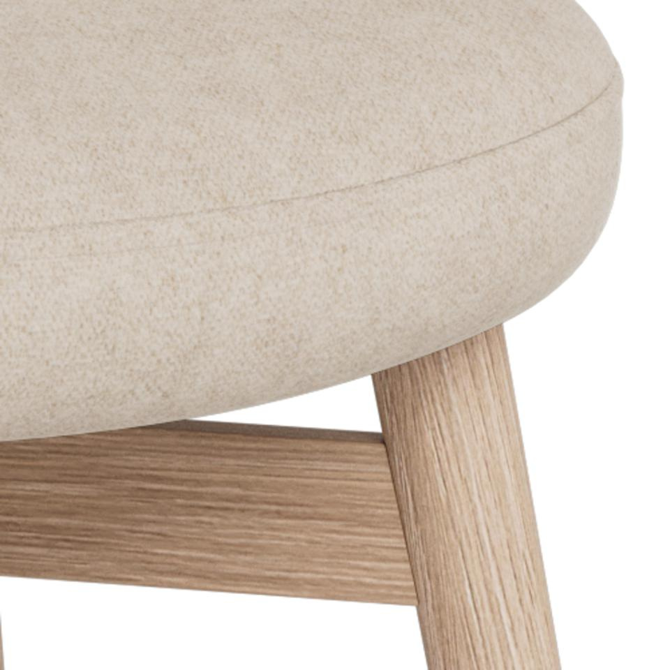 Neutralny beżowy kolor tapicerki i jasny dąb bielony powodują, że Joy bez trudu dopasuje się do różnych stołów: białych, drewnianych, a nawet czarnych w nowoczesnej jadalni. Świetnie współgra z wnętrzami skandynawskimi, nowoczesnymi i przytulnymi aranżacjami w stylu japandi. Dzięki kompaktowym wymiarom (głębokość 56 cm) krzesło dobrze sprawdzi się także w mniejszej kuchni czy aneksie.