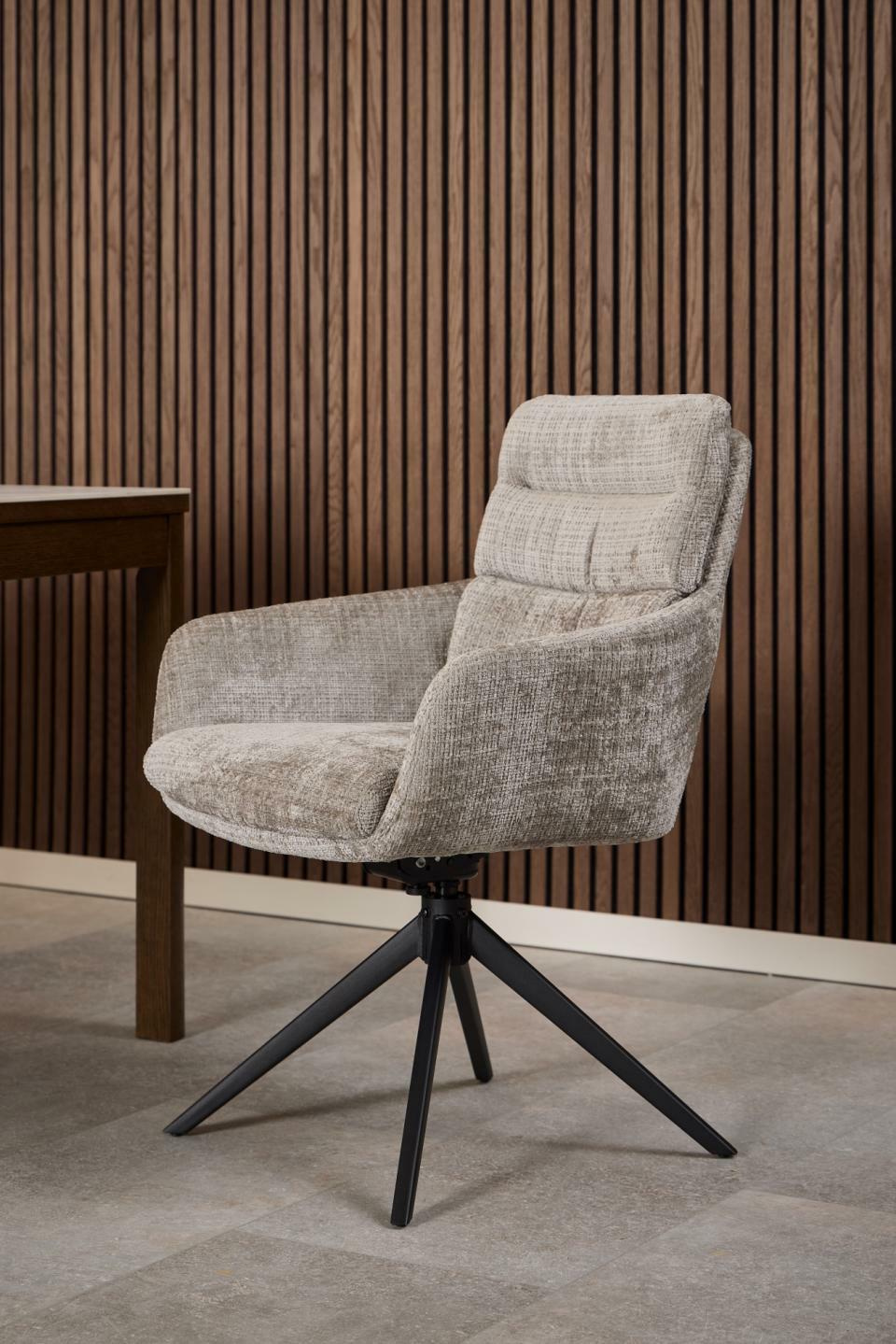 Krzesło Roger marki Actona to nowoczesne, tapicerowane krzesło obrotowe z podłokietnikami, stworzone z myślą o wygodnym użytkowaniu przy stole w jadalni, kuchni lub salonie. Szare siedzisko o wysokości 46 cm, oparte na stabilnej, czarnej stalowej podstawie, łączy komfort fotela z funkcjonalnością krzesła do jadalni.