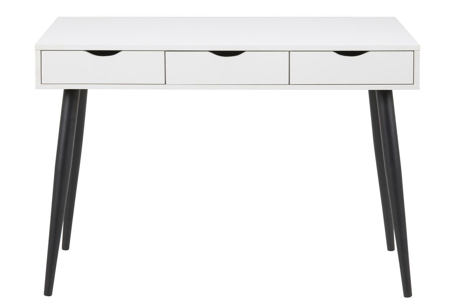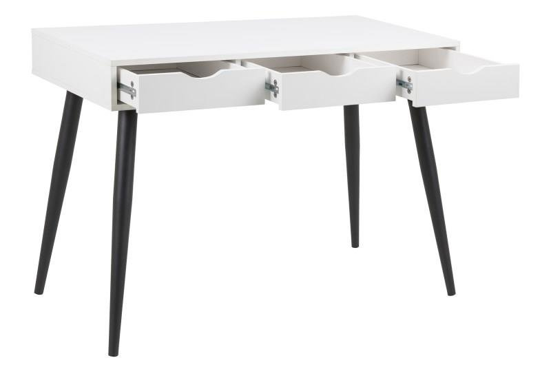 Biurko skandynawskie Scandi Intesi to propozycja dla osób ceniących funkcjonalność w nowoczesnym stylu. Solidny blat o szerokości 110 cm i głębokości 50 cm zapewnia wygodną przestrzeń do pracy, nauki lub kreatywnych projektów. Charakterystyczny biały blat na czarnej, metalowej podstawie doskonale wpisuje się w minimalistyczne, skandynawskie wnętrza. Trzy pojemne szuflady pozwalają utrzymać porządek i mieć wszystkie niezbędne akcesoria zawsze pod ręką.