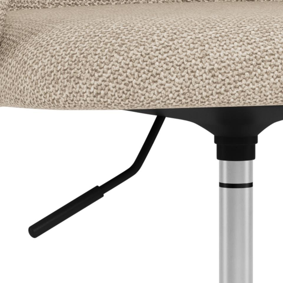 Fotel biurowy Eleanor marki Actona to nowoczesne, obrotowe krzesło do biurka w eleganckim beżowym kolorze, stworzone z myślą o wygodnej pracy i nauce. Miękkie, tapicerowane siedzisko z podłokietnikami oraz funkcja regulacji wysokości sprawiają, że z łatwością dopasujesz go do swojego biurka w biurze, gabinecie lub pokoju młodzieżowym.