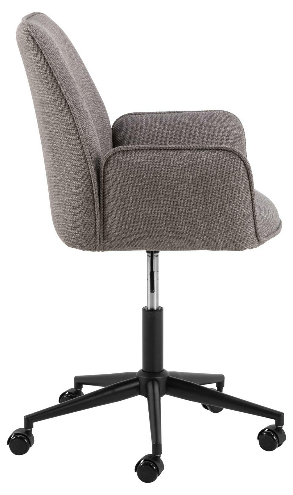 Fotel biurowy Glenda marki Actona to nowoczesny, tapicerowany fotel obrotowy do biurka, zaprojektowany z myślą o wygodnej pracy i nauce. Szarobrązowe siedzisko z miękką tkaniną oraz czarna podstawa na kółkach tworzą elegancki komplet, który sprawdzi się w biurze, gabinecie i pokoju młodzieżowym. Regulowana wysokość i podłokietniki pozwalają dopasować fotel do użytkownika oraz wysokości blatu.