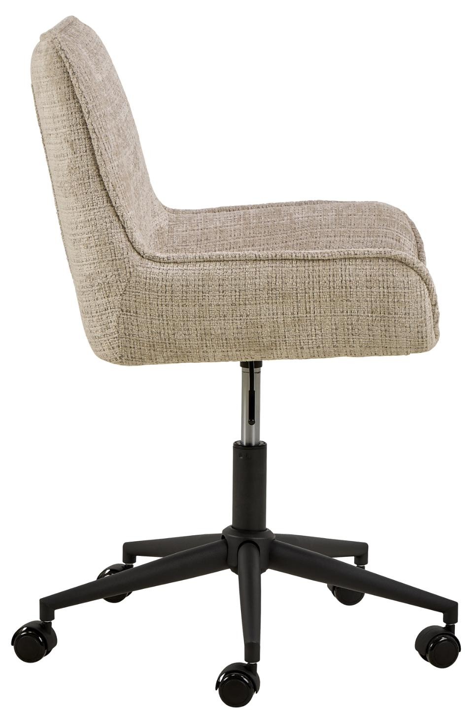 Beżowa tapicerka w matowym wykończeniu świetnie wpisuje się w nowoczesne wnętrza – od minimalistycznego biura, przez elegancki gabinet, aż po młodzieżowy pokój z komputerem. Kontrastowa, czarna podstawa dodaje fotelowi lekkości i sprawia, że łatwo zestawisz go z białym, drewnianym czy czarnym biurkiem. To wygodny fotel biurowy, który nie dominuje przestrzeni, ale dyskretnie ją porządkuje i ociepla.