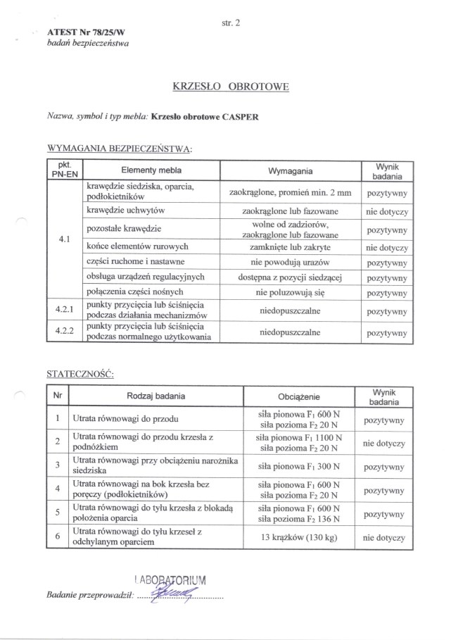 | Fotel atestowany: | TAK |