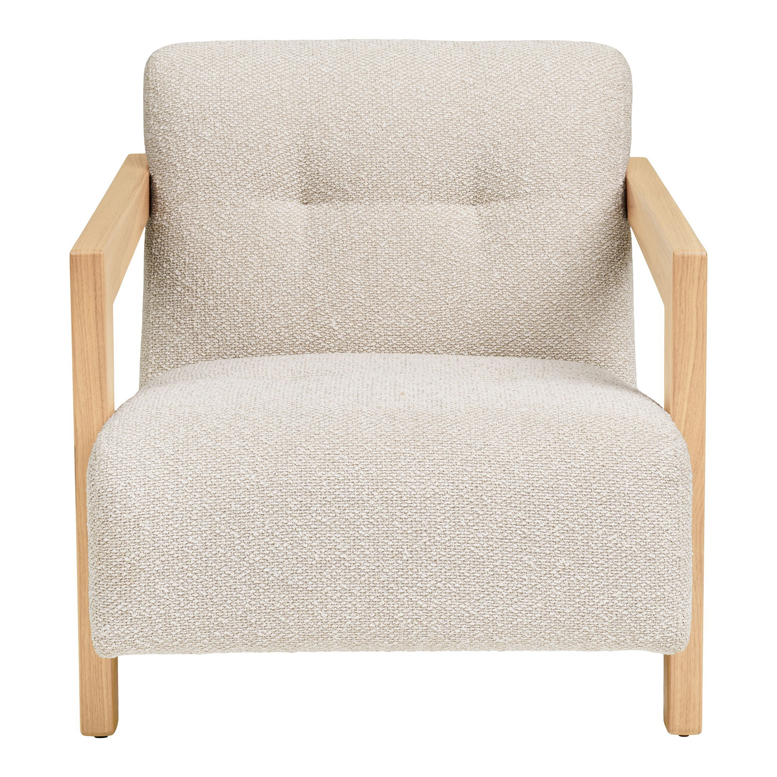 Fotel wypoczynkowy Caracas marki House Nordic to beżowy fotel do salonu w stylu skandynawskim, oparty na solidnej podstawie z drewna dębowego w kolorze naturalnym. Szerokie siedzisko o wymiarach 88×72 cm i wygodne podłokietniki zapewniają komfort codziennego relaksu, czytania lub odpoczynku po pracy.