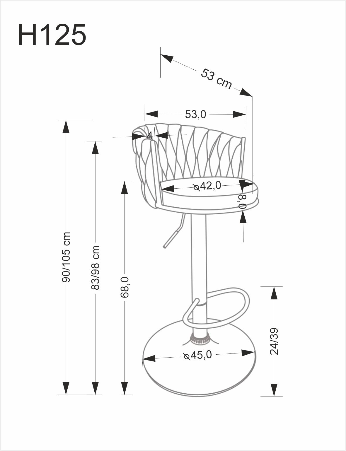 | Wysokość siedziska: | 68 - 83 |