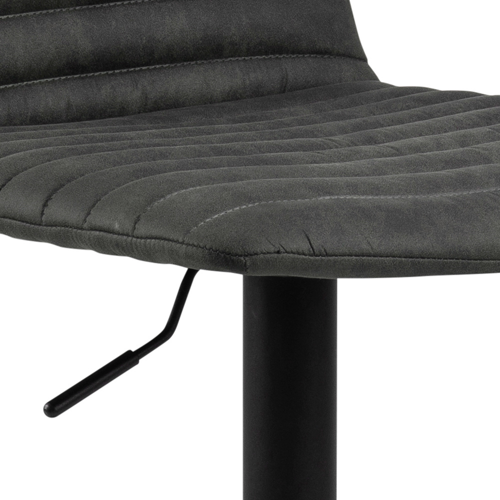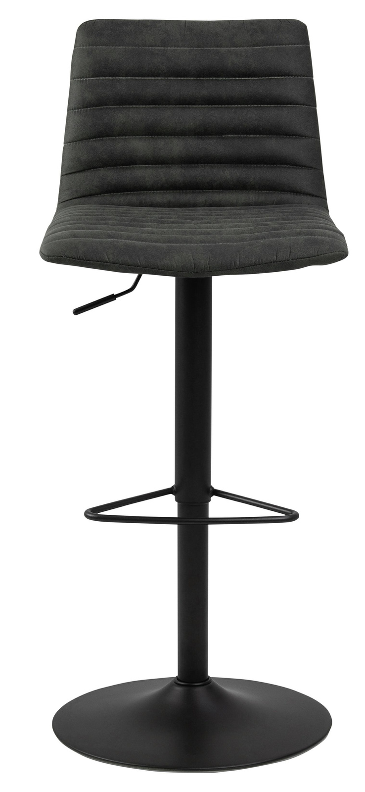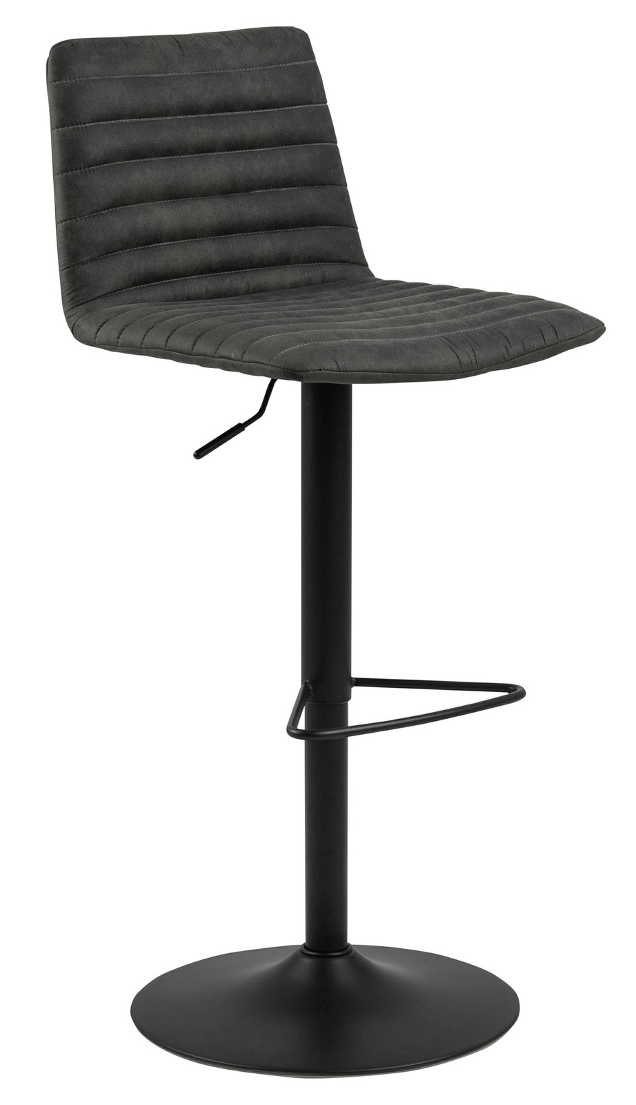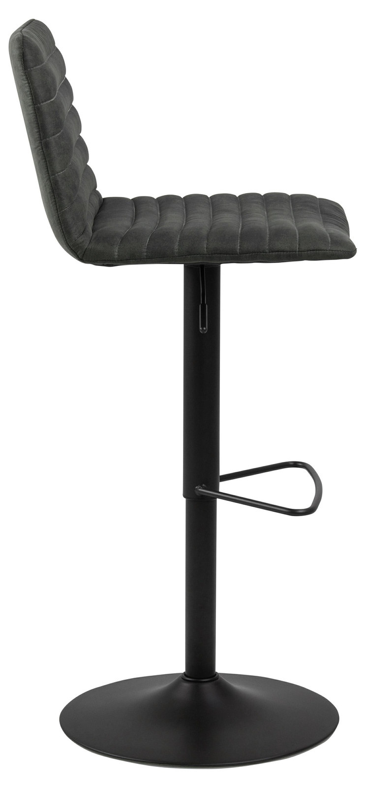 Hoker Kimmy marki Actona to nowoczesne krzesło barowe z oparciem, wykończone w antracytowej tkaninie i oparte na czarnej, metalowej nodze z funkcją obrotu i regulacją wysokości. Solidna stalowa podstawa, wygodne, miękko tapicerowane siedzisko oraz wysokość całkowita do 110,5 cm sprawiają, że to idealny hoker do kuchni, jadalni i domowej wyspy kuchennej.