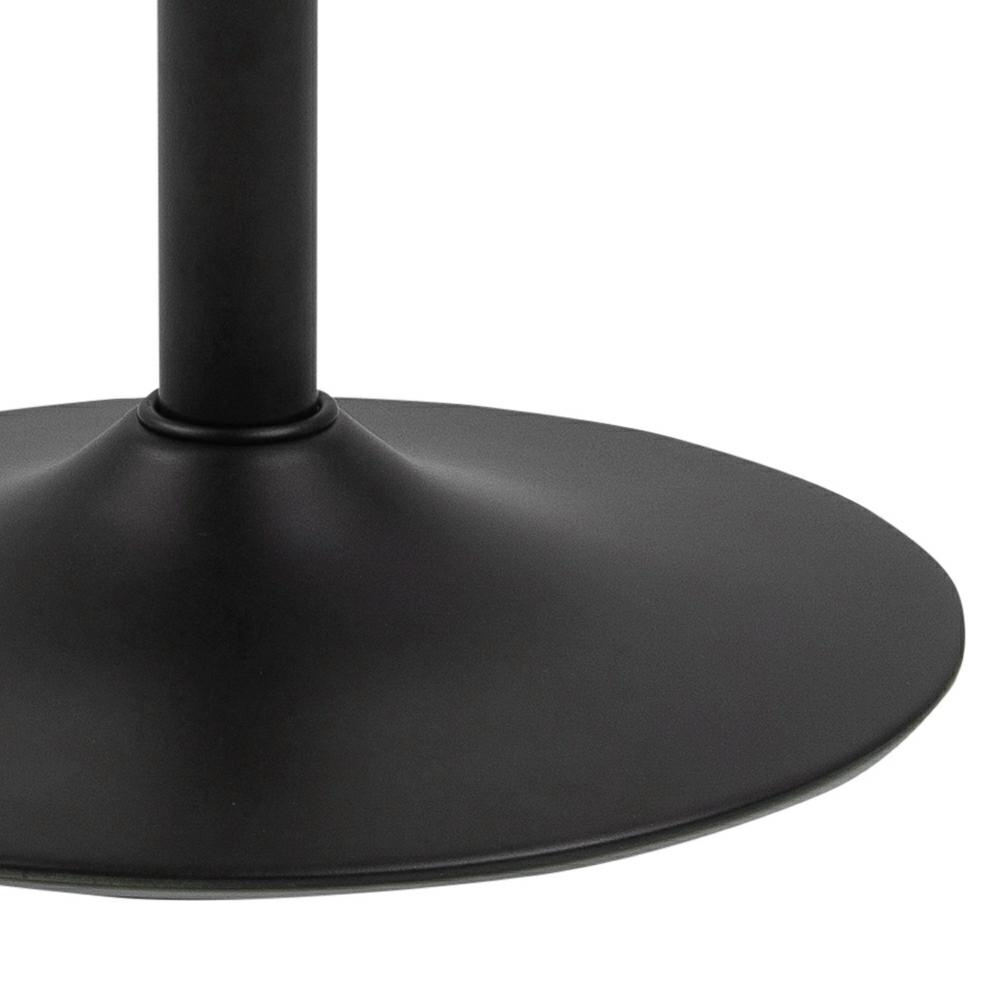 Połączenie antracytowego siedziska z czarną, metalową podstawą w półmacie nadaje hokerowi Kimmy wyrazisty, nowoczesny charakter. Taka kolorystyka świetnie współgra z białymi frontami, szarymi blatami czy ciemnym drewnem, tworząc spójną aranżację kuchni lub jadalni. Smukła, pojedyncza noga i okrągła podstawa wizualnie odciążają przestrzeń, dzięki czemu nawet kilka hokerów ustawionych obok siebie nie przytłacza wnętrza.
