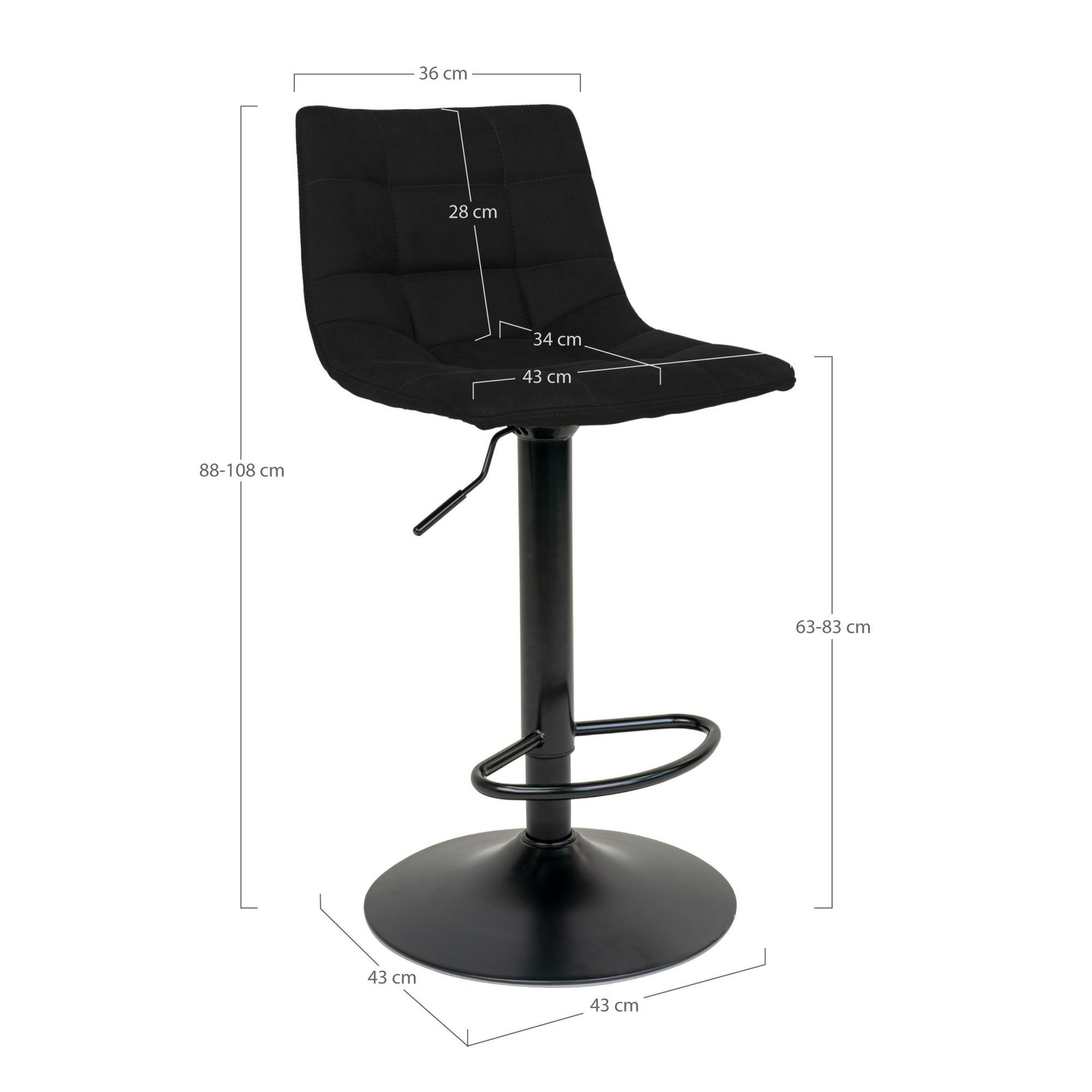 Hoker Middelfart czarny marki Intesi to nowoczesny stołek barowy z welurowym siedziskiem, wyposażony w obrotową podstawę i regulację wysokości. Tapicerowany czarną tkaniną welurową, z ergonomicznym oparciem, pozwala na wygodne użytkowanie zarówno przy kuchennej wyspie, jak i w otwartej jadalni. Metalowa podstawa w wykończeniu półmat łączy trwałość z eleganckim, minimalistycznym stylem.