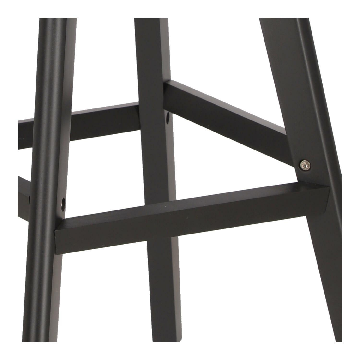 Ten hoker z oparciem został zaprojektowany z myślą o wygodzie użytkowników. Wysokość siedziska – aż 75 cm – sprawdzi się przy większości standardowych wysp i blatów barowych, a ergonomicznie wyprofilowane oparcie skutecznie podpiera plecy, pozwalając na relaks podczas długich rozmów przy stole. Miękka tapicerka z pianki i tkaniny sprawia, że nawet wielogodzinne użytkowanie pozostaje komfortowe. Praktyczny podnóżek pozwala wygodnie oprzeć nogi, co docenią zarówno domownicy, jak i goście.