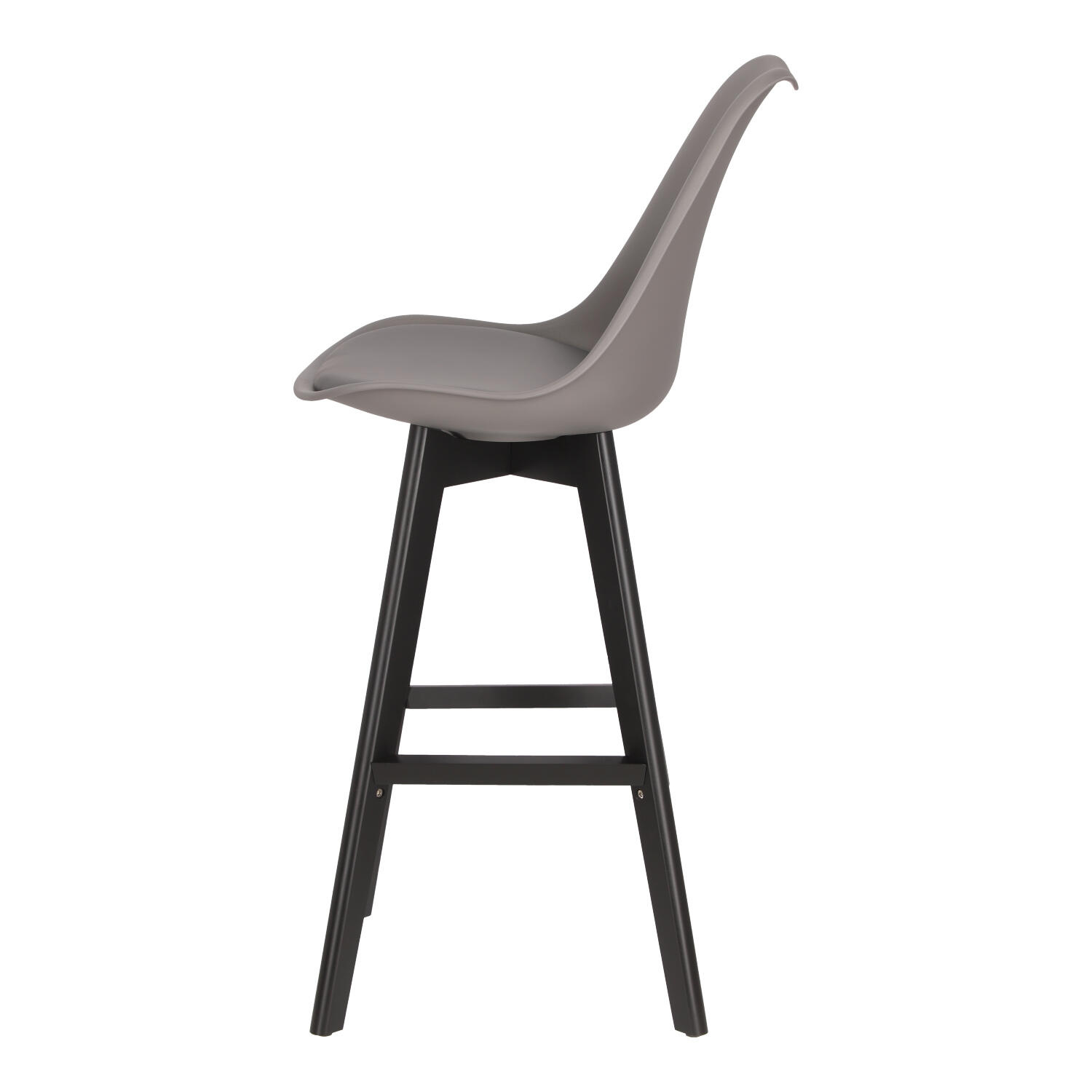 Hoker z oparciem Norden marki Intesi to nowoczesny, drewniany stołek barowy o wysokości siedziska 75 cm, zaprojektowany z myślą o wygodzie i stylu w kuchni oraz przy wyspie kuchennej. Siedzisko w eleganckim szarym kolorze, wyściełane miękką pianką i obite przyjemną w dotyku tkaniną, zapewnia komfort nawet podczas dłuższego siedzenia. Stabilną podstawę tworzą cztery czarne nogi z litego drewna bukowego, a funkcjonalny podnóżek oraz profilowane, wysokie oparcie czynią ten hoker nie tylko estetycznym, ale i praktycznym rozwiązaniem do nowoczesnych wnętrz.