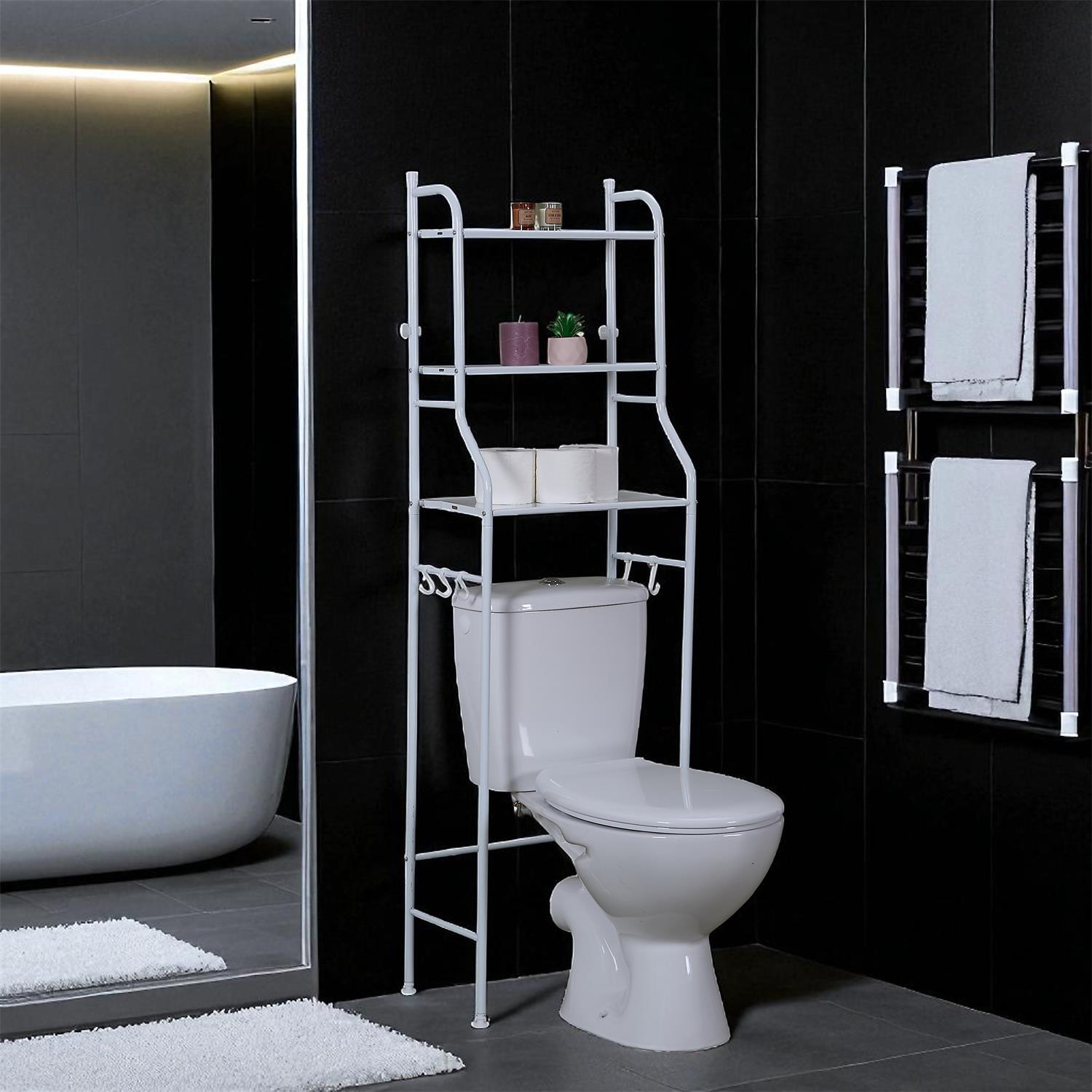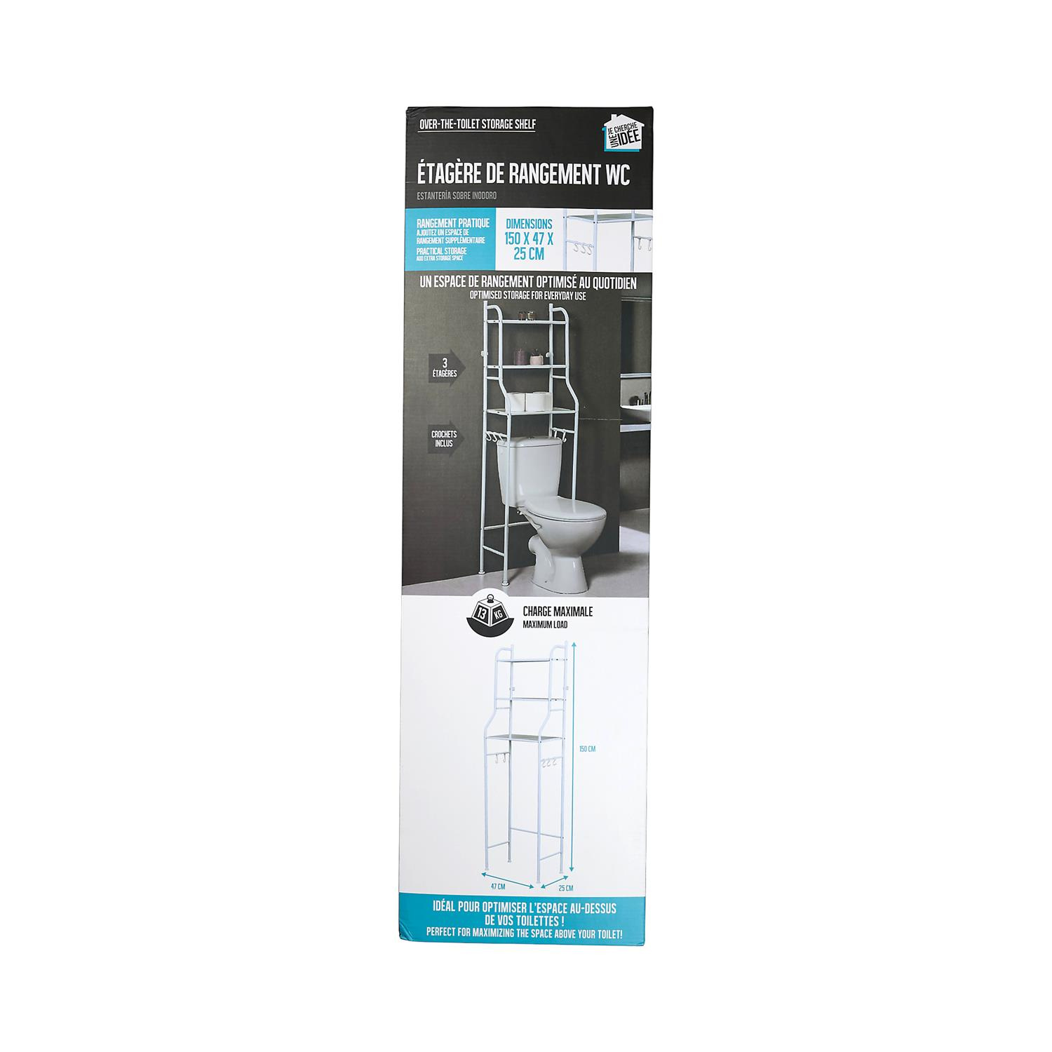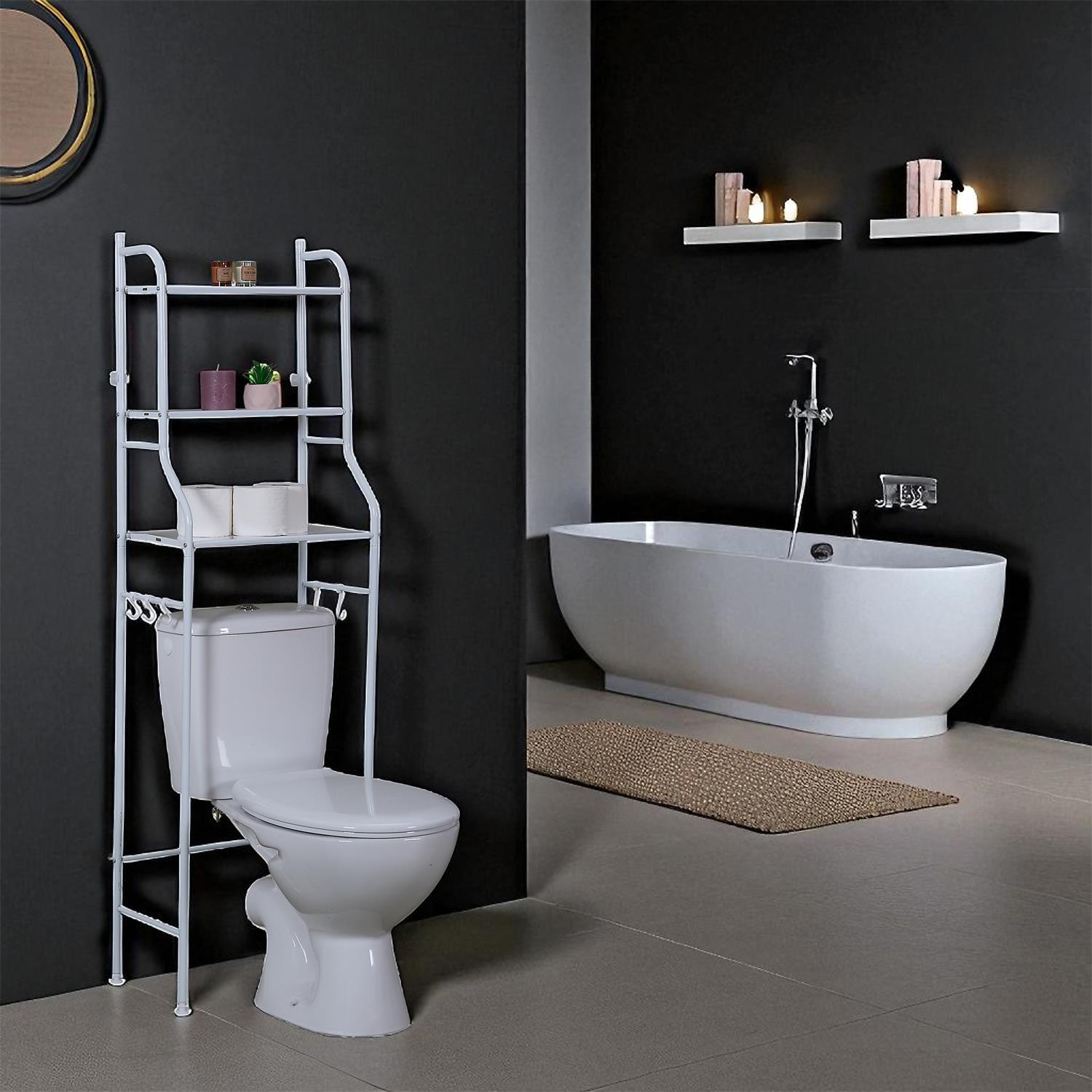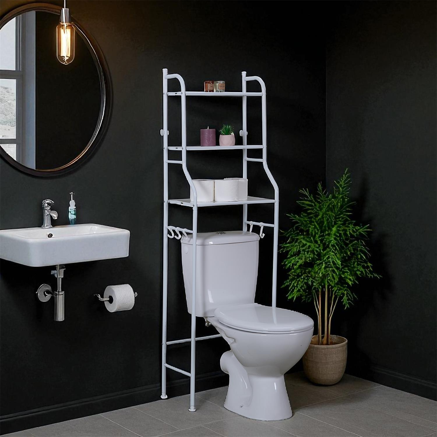Regał łazienkowy nad sedes Intesi to praktyczny, biały regał metalowy o wysokości 150 cm, zaprojektowany specjalnie do wykorzystania przestrzeni nad toaletą. Trzy otwarte półki oraz boczne wieszaki pozwalają wygodnie zorganizować papier toaletowy, kosmetyki i dekoracje, bez konieczności wiercenia w ścianach.