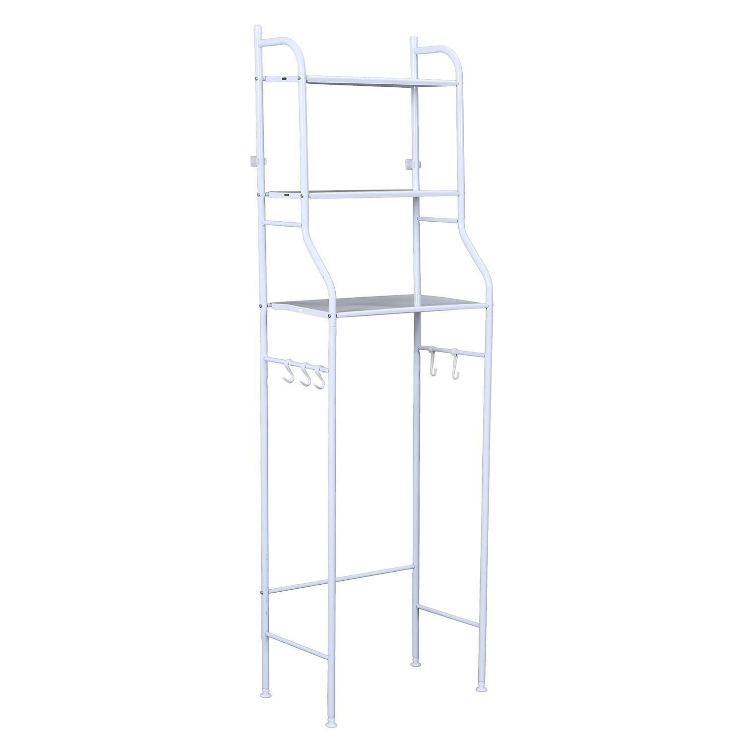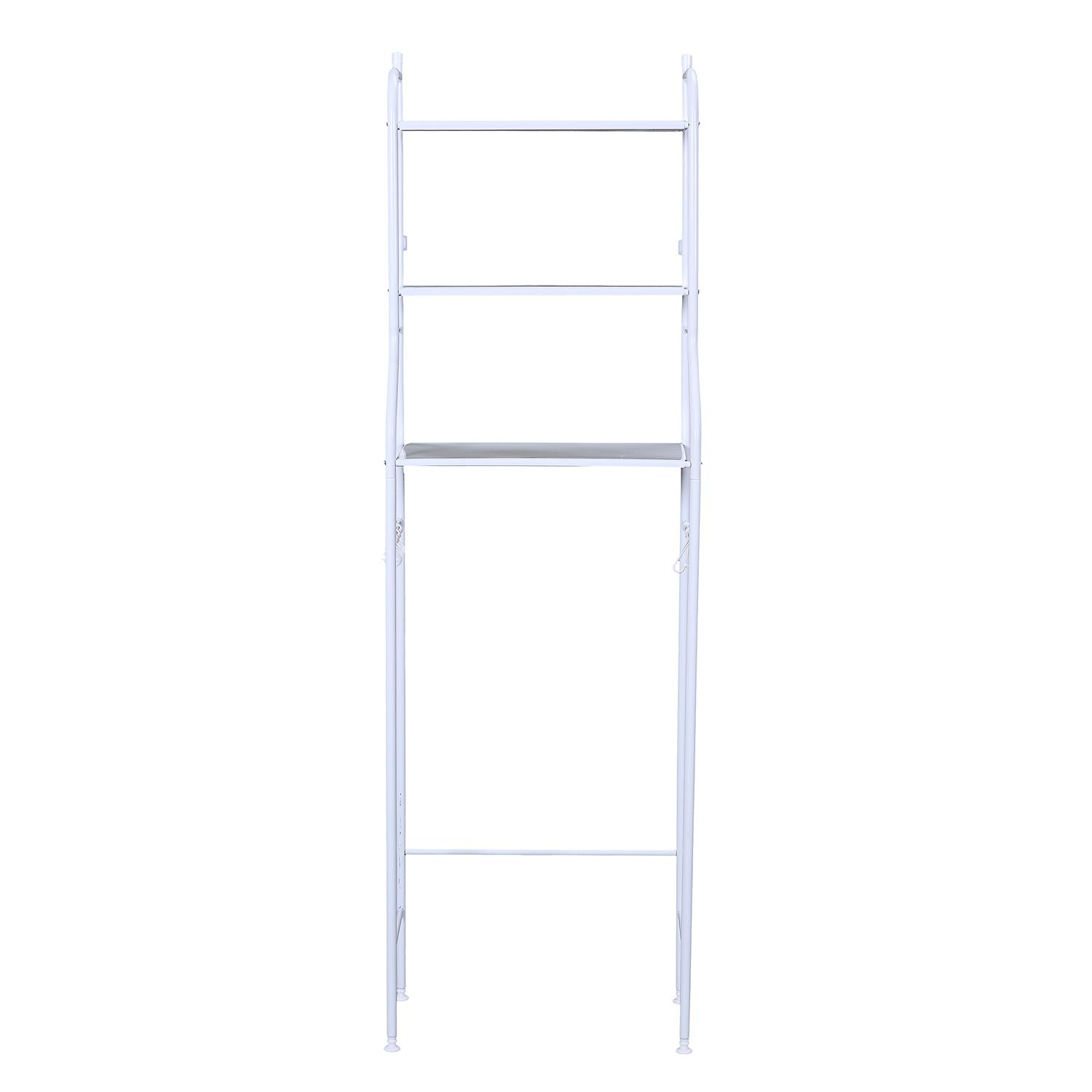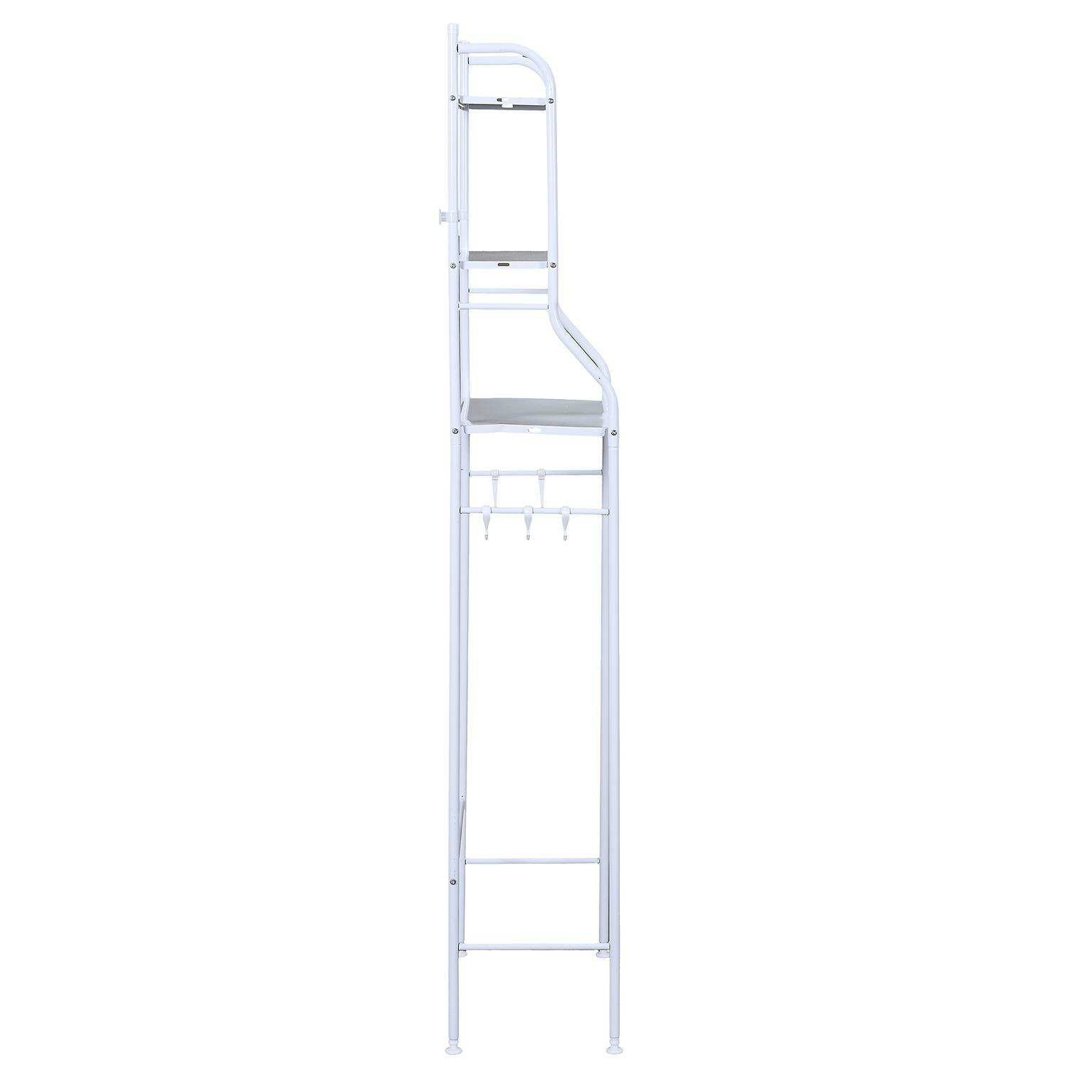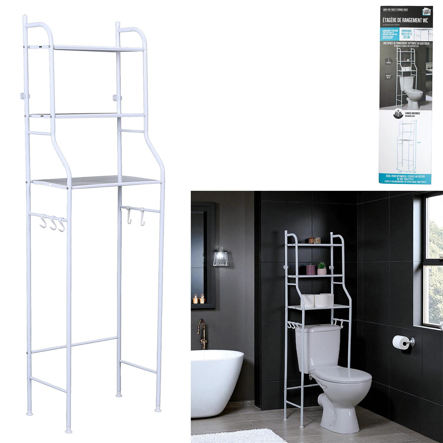 Regał łazienkowy nad sedes Intesi to praktyczny, biały regał metalowy o wysokości 150 cm, zaprojektowany specjalnie do wykorzystania przestrzeni nad toaletą. Trzy otwarte półki oraz boczne wieszaki pozwalają wygodnie zorganizować papier toaletowy, kosmetyki i dekoracje, bez konieczności wiercenia w ścianach.