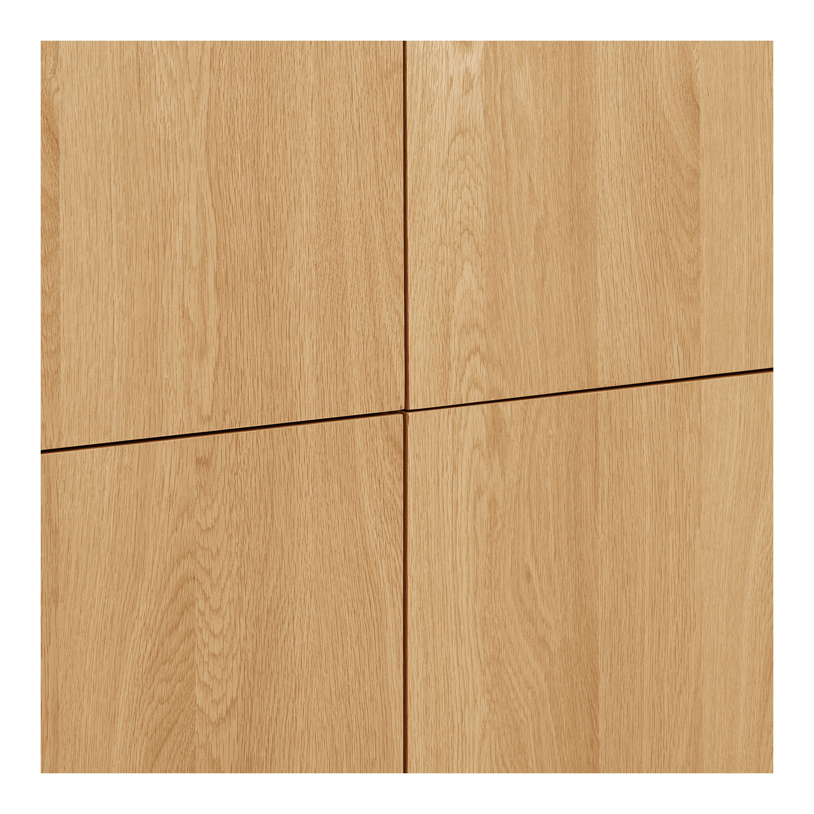 Fornirowane powierzchnie w kolorze naturalnego dębu oraz gładkie fronty nadają komodzie spokojny, ponadczasowy charakter. Matowe wykończenie nie odbija przesadnie światła, więc świetnie prezentuje się zarówno w jasnych, jak i ciemniejszych wnętrzach. To komoda skandynawska, która ociepli nowoczesny salon, a w przedpokoju stworzy elegancką bazę do dekoracji – lustra, lampy stołowej czy rodzinnych zdjęć.