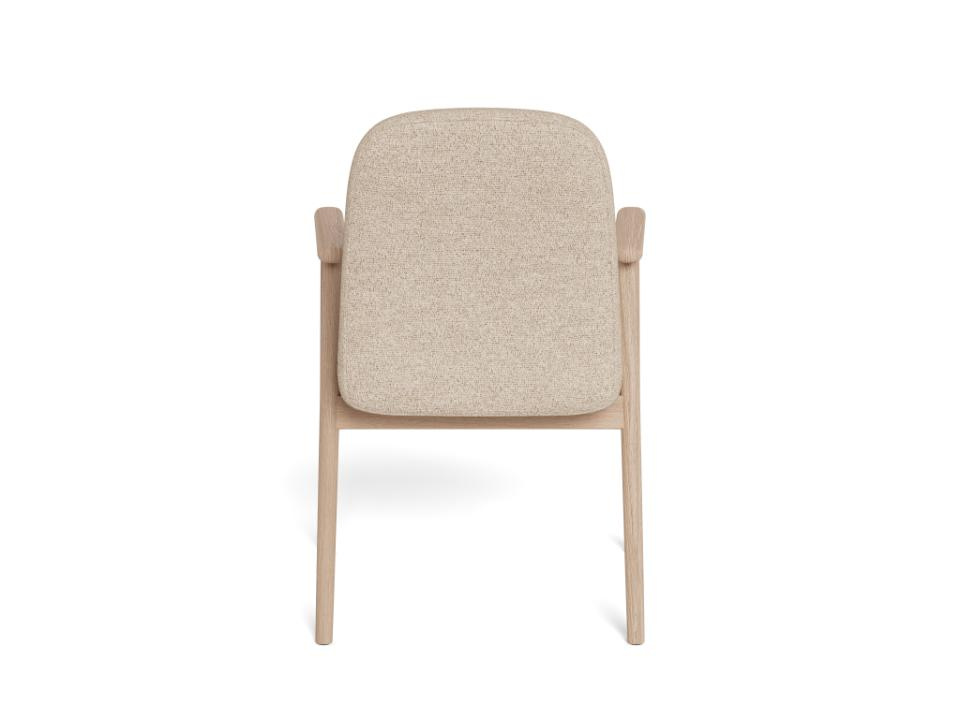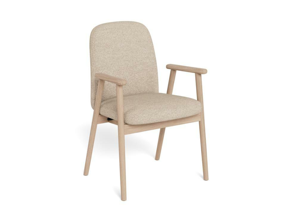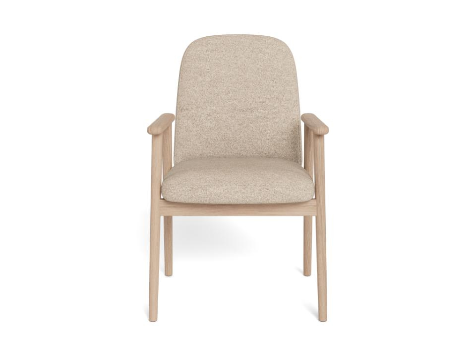 Krzesło Calvin Arm marki Actona to eleganckie, beżowe krzesło tapicerowane z podłokietnikami, idealne do jadalni, salonu lub kuchni. Połączenie miękkiej tkaniny bouclé z olejowanym, bielonym drewnem dębowym tworzy ponadczasowy, skandynawski design, który ociepla wnętrze i zaprasza do długich, komfortowych spotkań przy stole.
