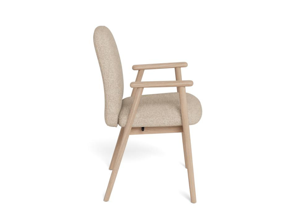 Calvin Arm doskonale wpisuje się w trend jasnych, przytulnych wnętrz w stylu skandynawskim. Beżowe krzesło do jadalni na dębowych nogach łatwo dopasujesz zarówno do stołu z naturalnego drewna, jak i do nowoczesnych blatów w bieli czy szarości. Delikatnie zaokrąglone oparcie i podłokietniki nadają mu przyjazny, domowy charakter, dzięki czemu świetnie sprawdzi się też jako komfortowe krzesło do salonu przy stole kawowym czy stole rozkładanym.