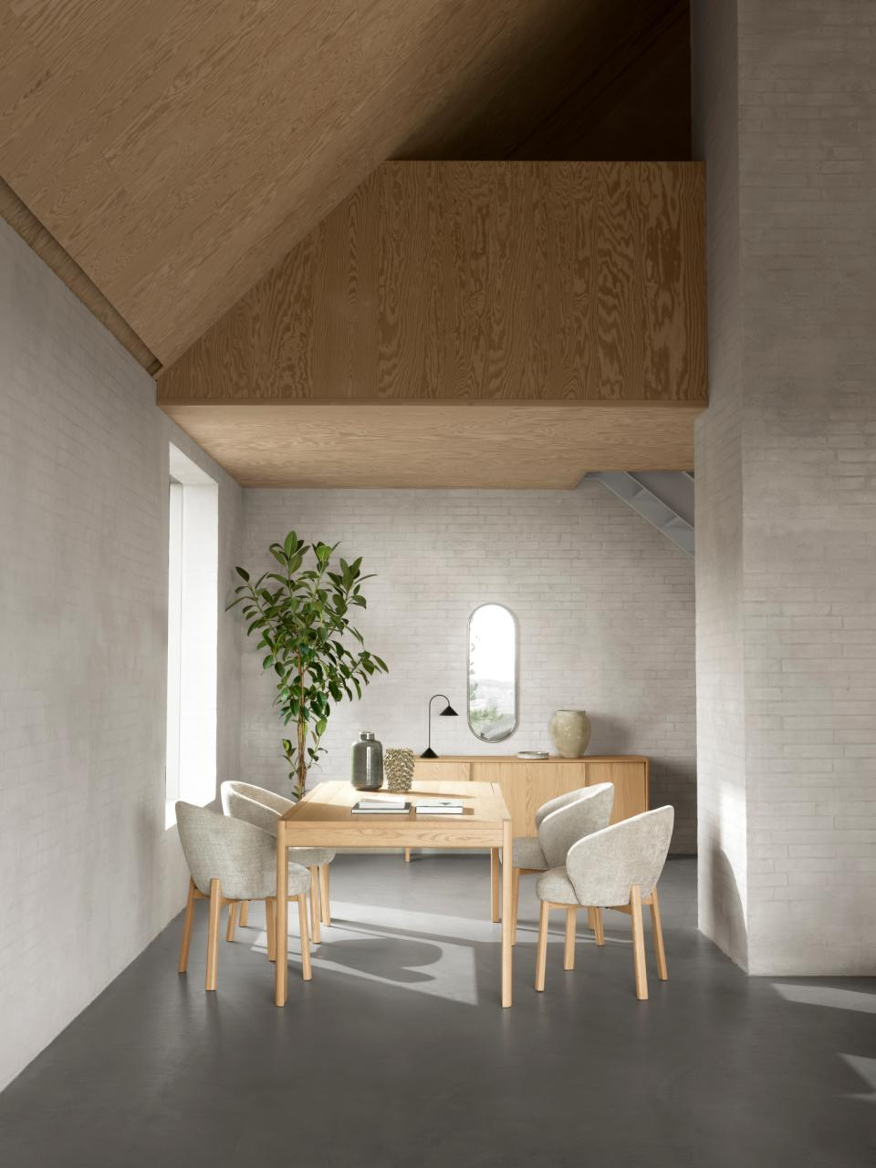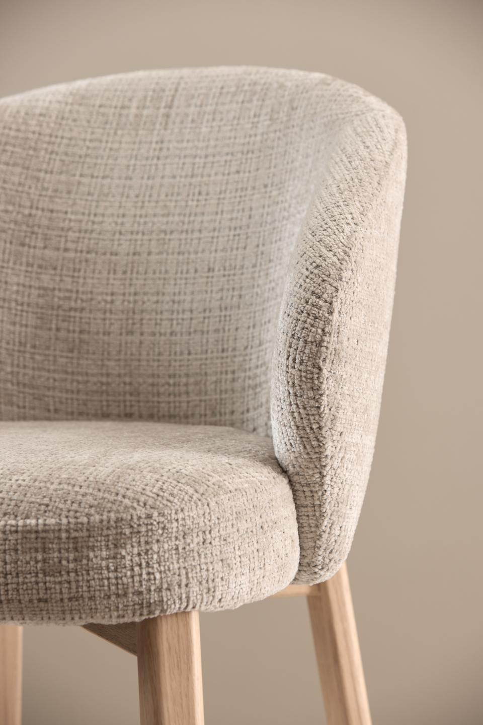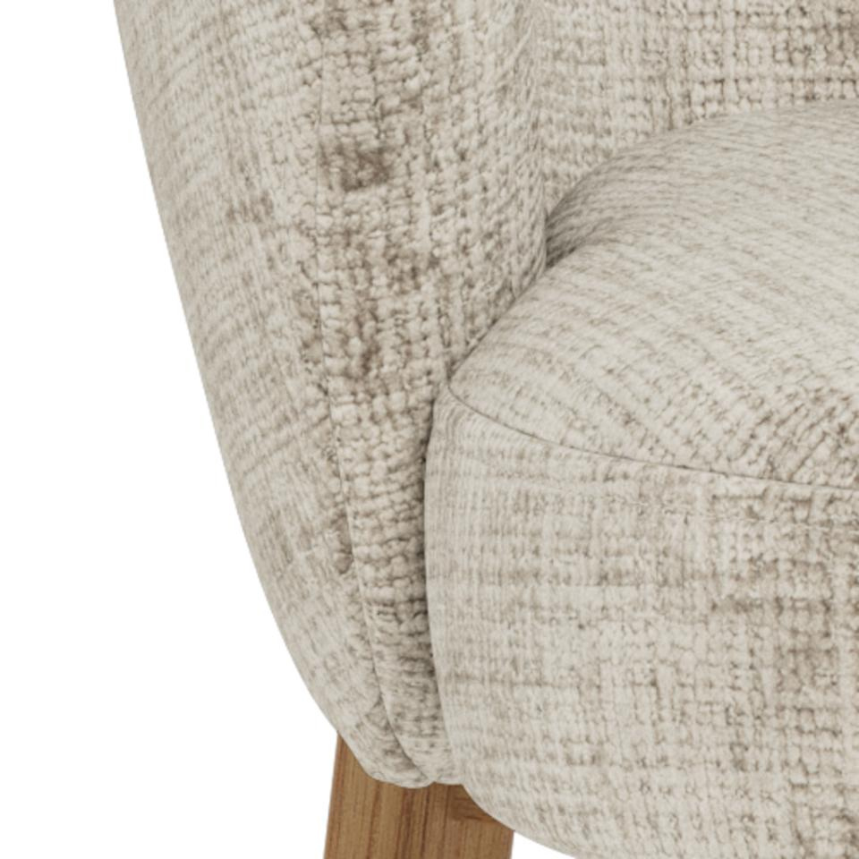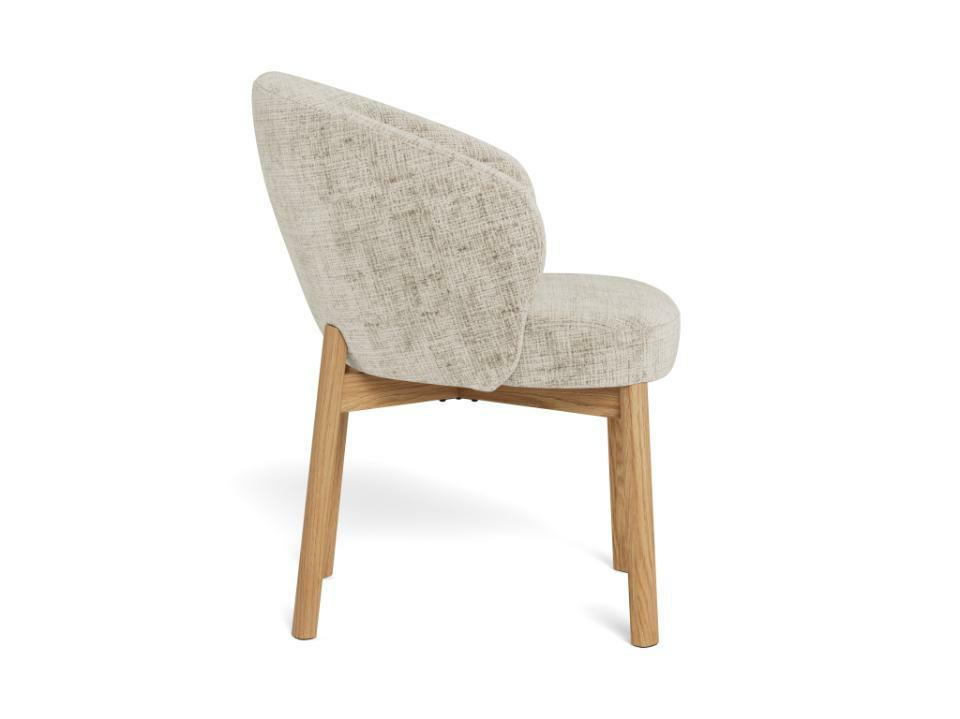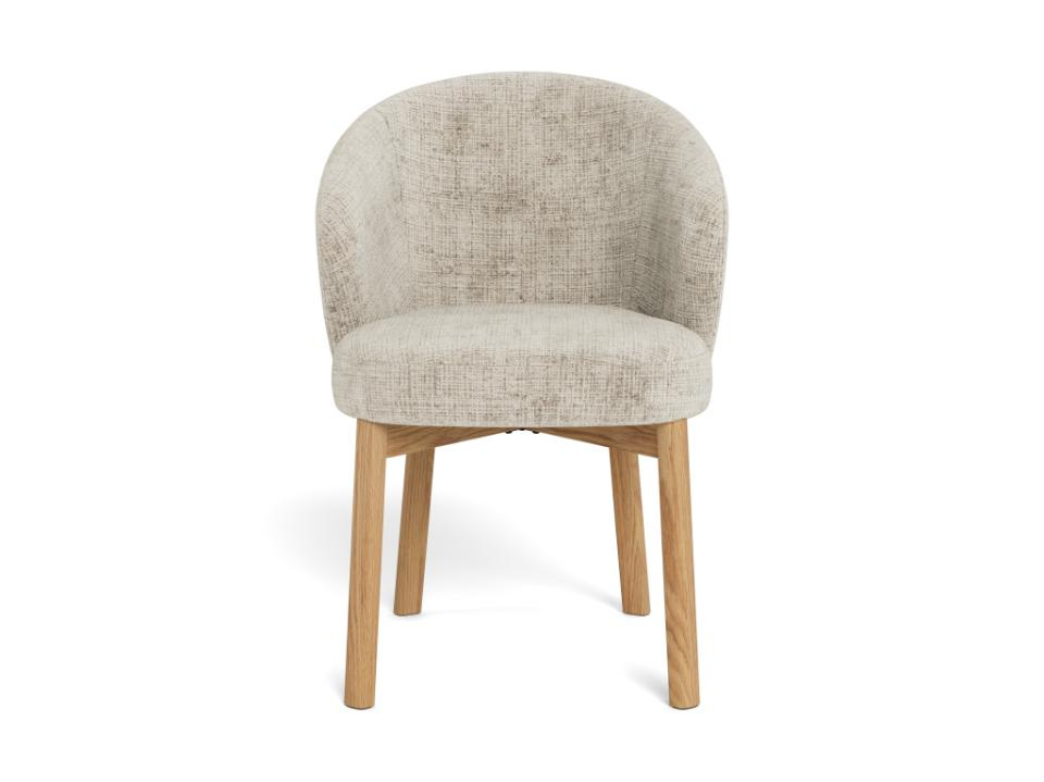 Krzesło Darlene marki Actona to tapicerowane, beżowe krzesło skandynawskie o wysokości 80,5 cm, stworzone z myślą o wygodnym użytkowaniu przy stole w jadalni, kuchni lub salonie. Miękkie siedzisko z podłokietnikami oraz stabilna podstawa z naturalnego drewna dębowego łączą komfort codziennego siedzenia z lekką, przytulną estetyką.