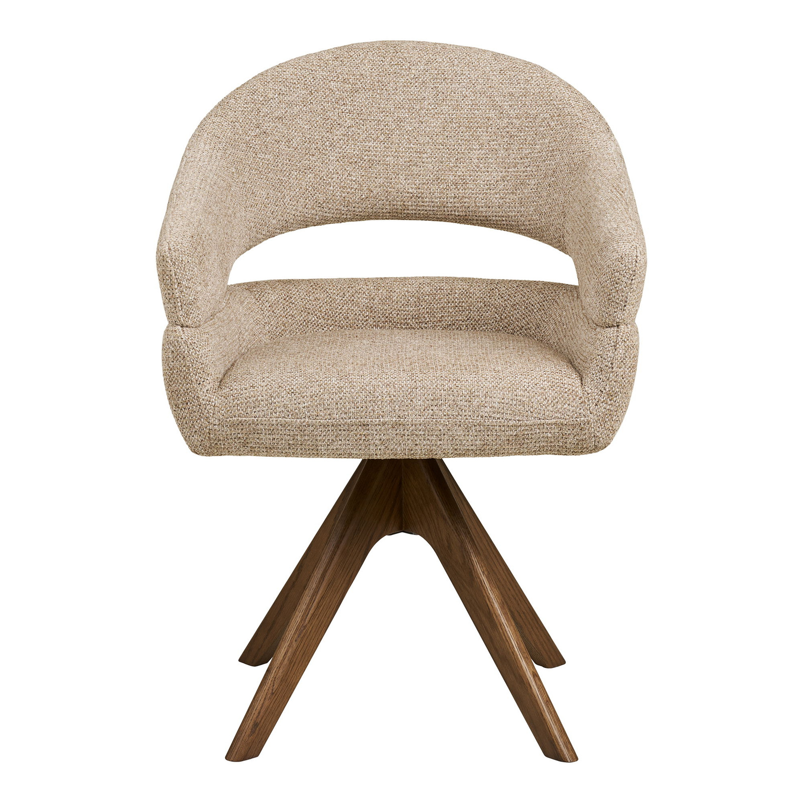 Krzesło Dover tapicerowane obrotowe do jadalni w kolorze piaskowy melanż dąb będzie doskonałym wyborem, jeśli szukasz wygodnego, estetycznego krzesła do jadalni, kuchni lub salonu, które łączy funkcjonalność z ponadczasowym skandynawskim stylem.