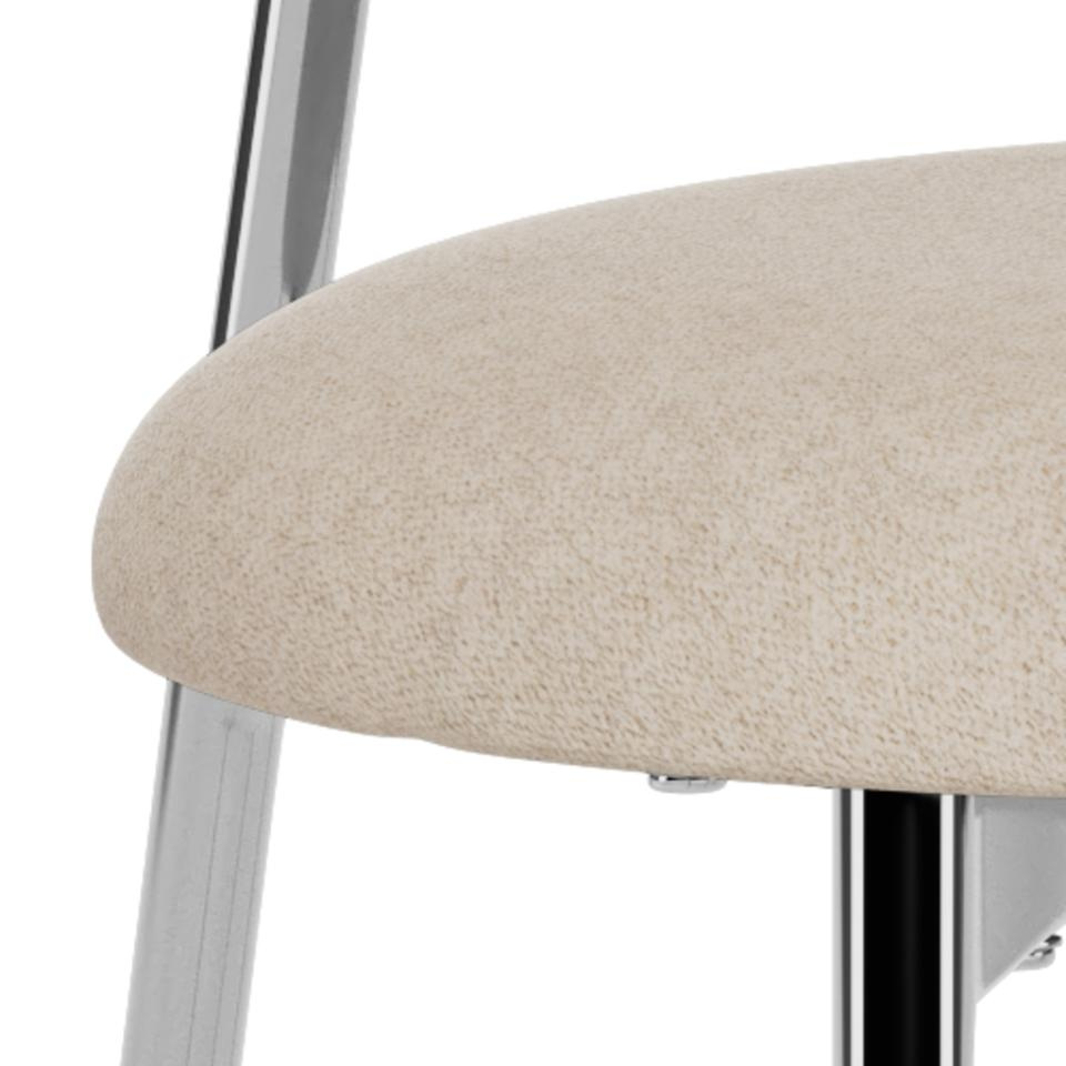Beżowe krzesło tapicerowane Lyric zostało zaprojektowane z myślą o nowoczesnych, jasnych wnętrzach. Delikatna tkanina w piaskowym odcieniu ociepla przestrzeń i łatwo łączy się z drewnianymi stołami oraz białymi lub szarymi frontami kuchennymi. Chromowana podstawa w połysku dodaje lekkości i tworzy efekt „uniesienia” siedziska, dzięki czemu całość nie przytłacza nawet mniejszej jadalni czy kuchni.