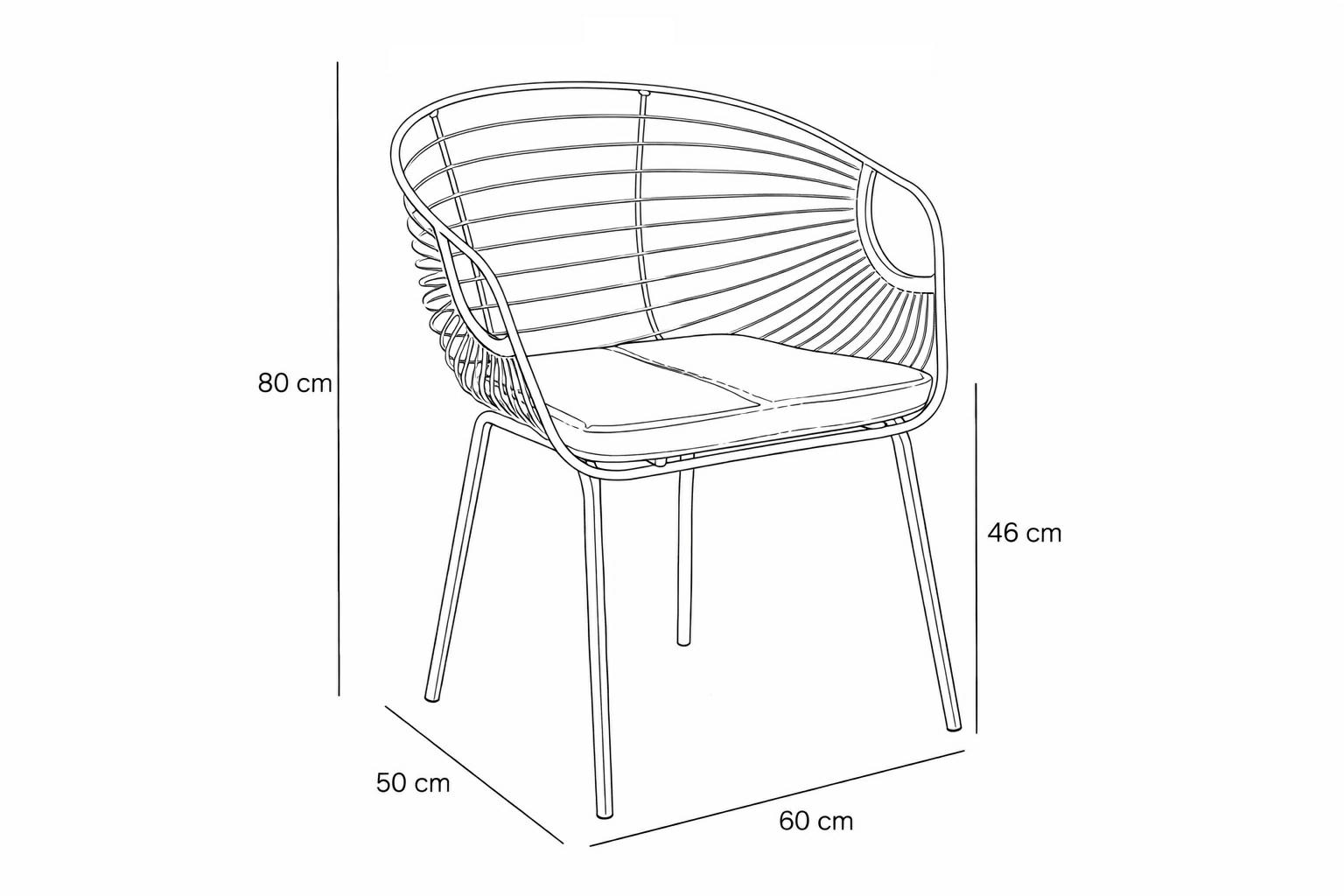 Wysokość całkowita krzesła 80 cm oraz siedzisko umieszczone na wysokości 46 cm zapewniają wygodną pozycję zarówno przy niskim, jak i standardowym stole. Podłokietniki na wysokości 70 cm pozwalają swobodnie oprzeć ręce, co znacząco zwiększa komfort podczas dłuższych posiłków, spotkań rodzinnych czy pracy przy stole. Dodatkowa poduszka na siedzisku podnosi wygodę siedzenia i sprawia, że metalowe krzesło staje się przyjemne nawet przy wielogodzinnym użytkowaniu.