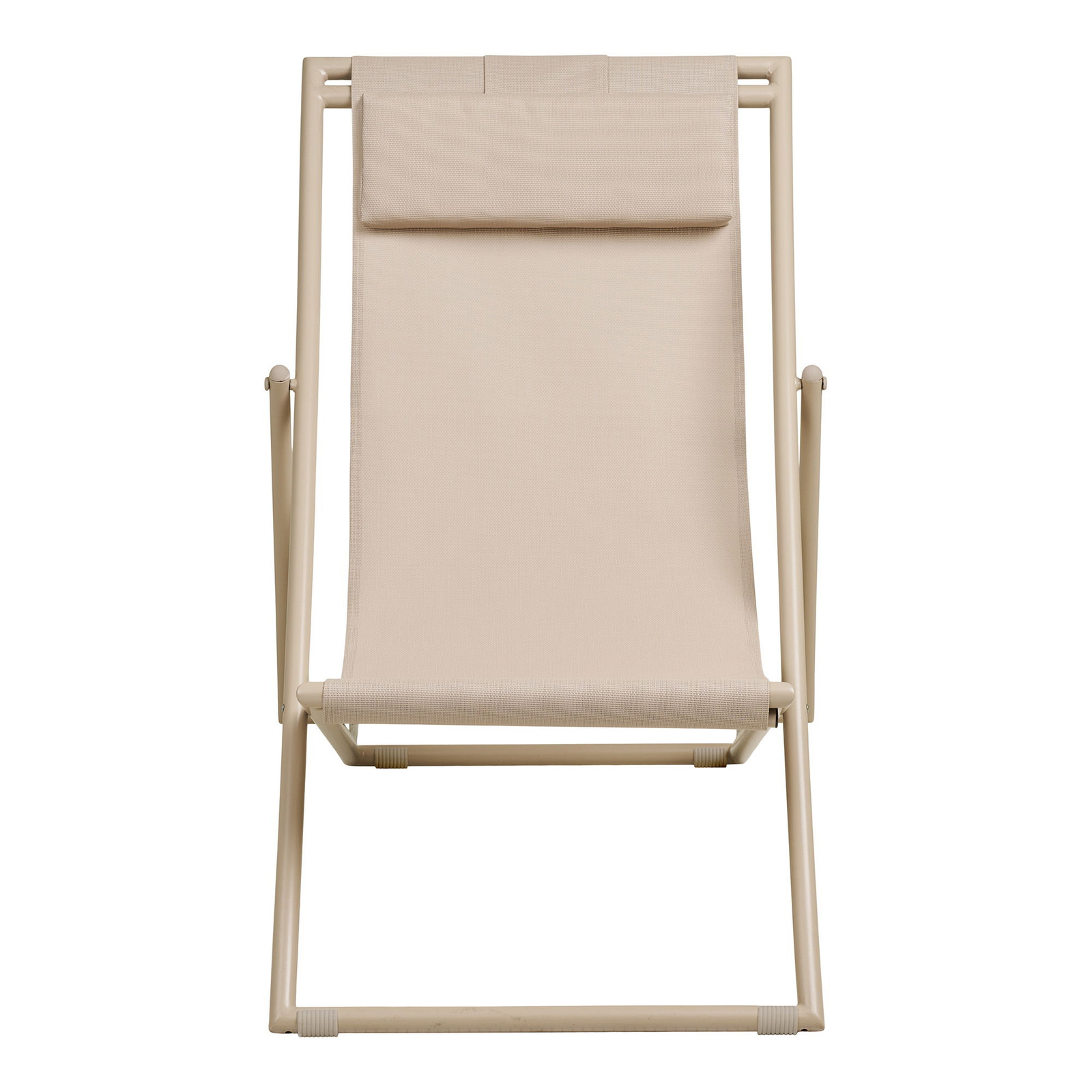 Krzesło plażowe Curtis taupe marki House Nordic to składany leżak plażowy z regulowanym oparciem, idealny na ogród, taras i balkon. Stabilna podstawa ze stali oraz wygodne beżowe siedzisko zapewniają komfort odpoczynku przy maksymalnym obciążeniu do 110 kg.
