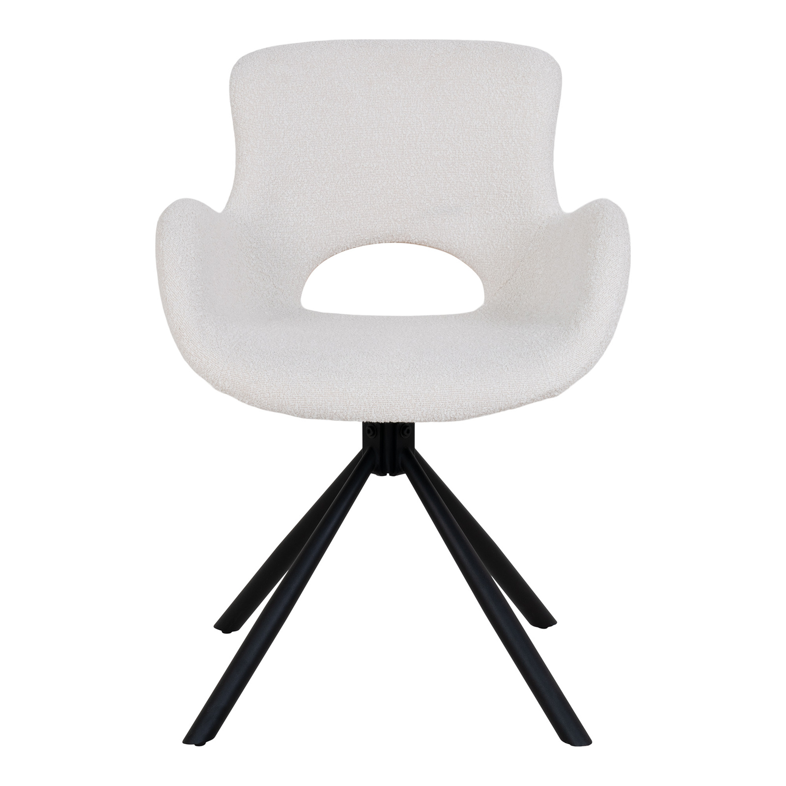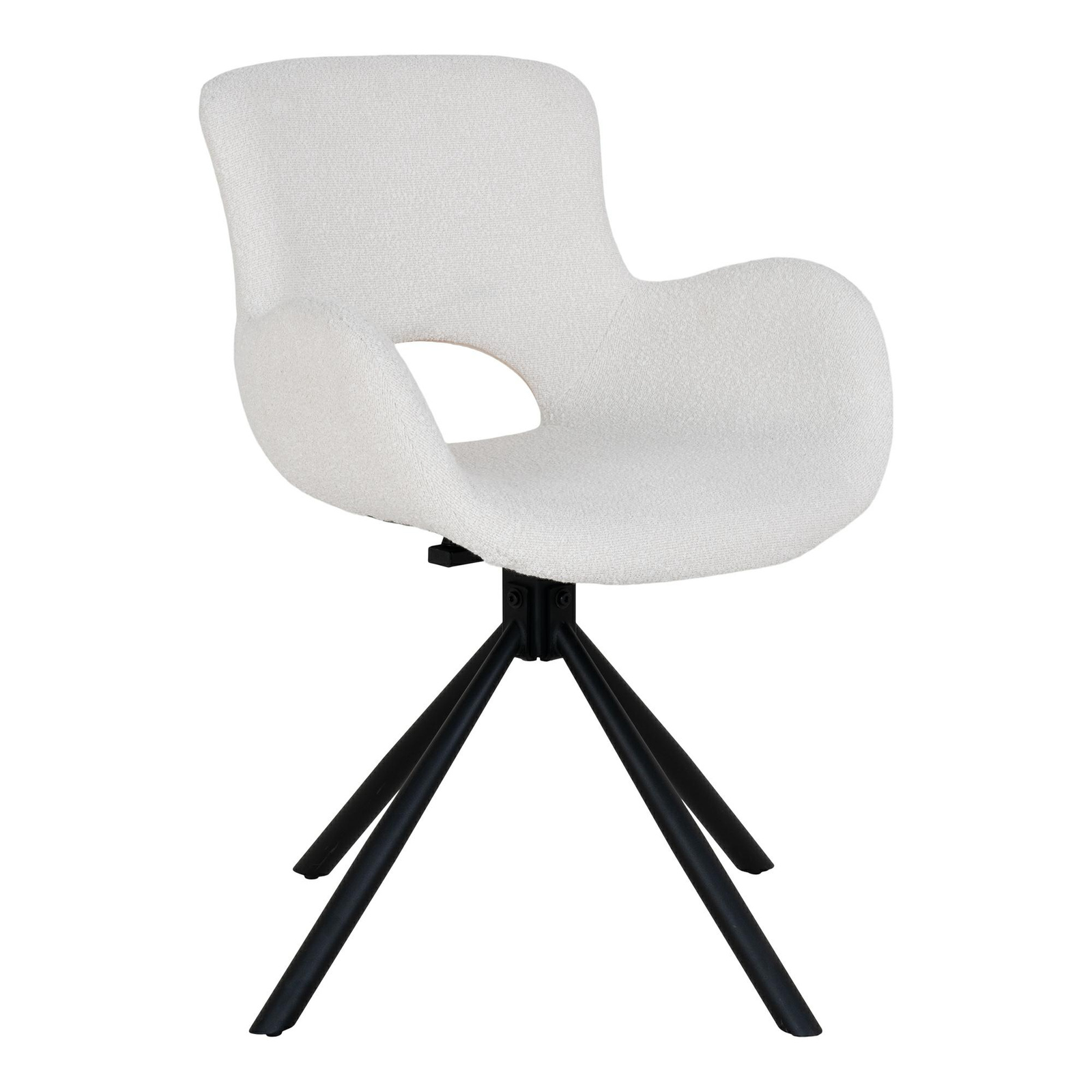 Obrotowe siedzisko umożliwia swobodne poruszanie się przy stole, co docenią zarówno domownicy, jak i goście podczas rodzinnych spotkań. Ergonomicznie wyprofilowane podłokietniki odciążają ramiona, zapewniając wygodę podczas długich rozmów czy pracy przy laptopie. Mięsista tkanina boucle sprawia, że każde usiąście to czysta przyjemność, a miękka pianka tapicerska dopasowuje się do sylwetki.