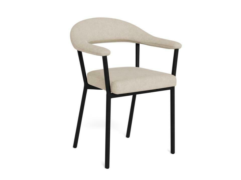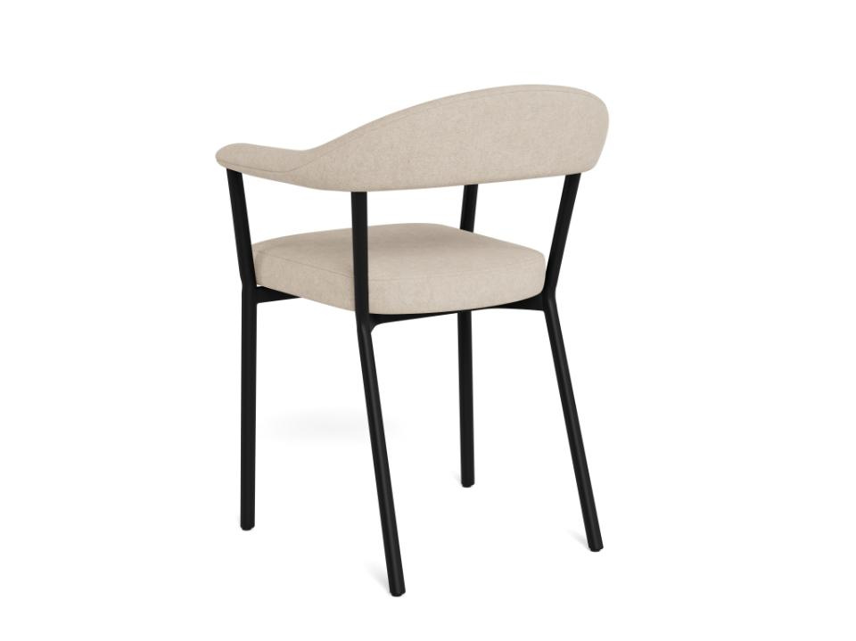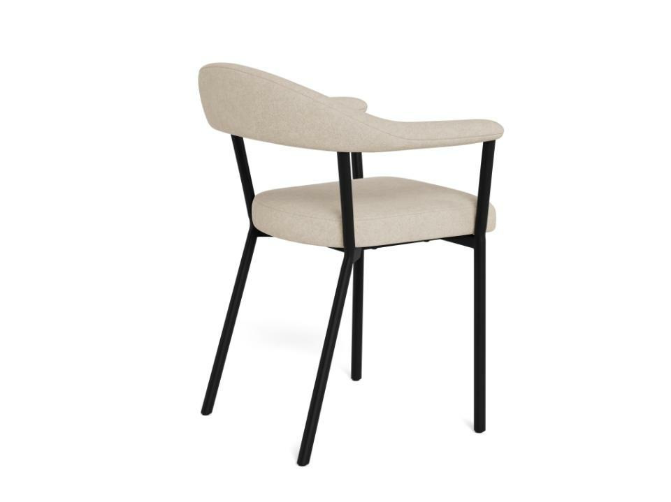 Krzesło tapicerowane Vivi marki Actona to wygodne krzesło do jadalni z podłokietnikami, łączące piaskowe siedzisko z czarną, metalową podstawą. Kompaktowe wymiary – szerokość 56 cm, głębokość 53 cm oraz wysokość 78 cm – sprawiają, że świetnie sprawdzi się przy większości stołów, także w mniejszych wnętrzach.