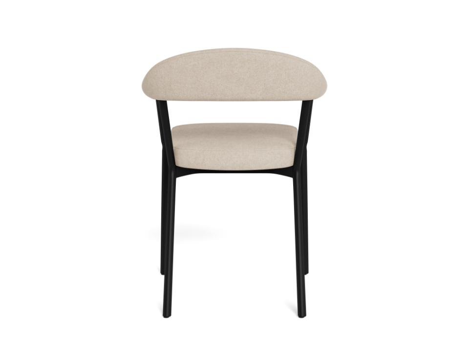 Piaskowy odcień tapicerki dodaje wnętrzu ciepła i przytulności, a zarazem jest na tyle neutralny, że łatwo zestawisz go z drewnianym stołem, jasną kuchnią czy nowoczesnym salonem. Smukła, czarna podstawa na czterech nogach nadaje krzesłu lekkości wizualnej i subtelnie podkreśla skandynawski charakter mebla. Półmatowe wykończenie metalu dobrze maskuje drobne ślady użytkowania, dzięki czemu krzesło na dłużej zachowuje elegancki wygląd.