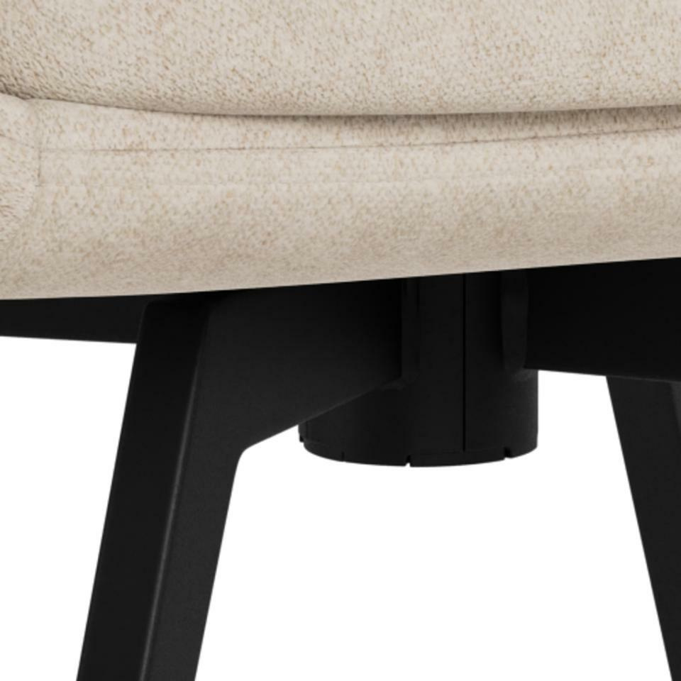 Stalowa podstawa na czterech nogach zapewnia stabilność i bezpieczeństwo użytkowania do 110 kg. Czarny kolor nóg w półmacie pięknie kontrastuje z beżową tapicerką, tworząc spójny, nowoczesny zestaw idealny do współczesnych aranżacji jadalni i salonu.