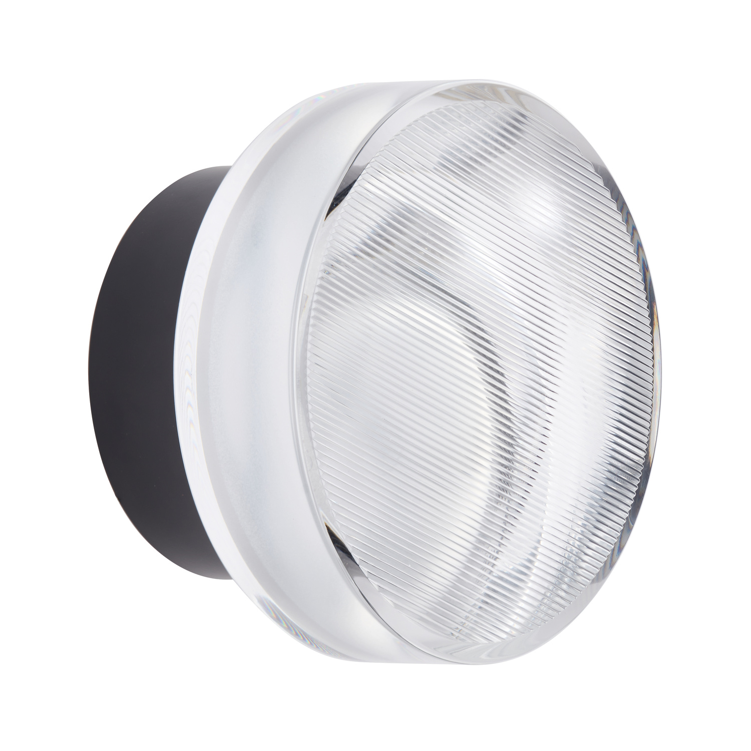 Elegancki okrągły kinkiet transparentny z czarnym wykończeniem