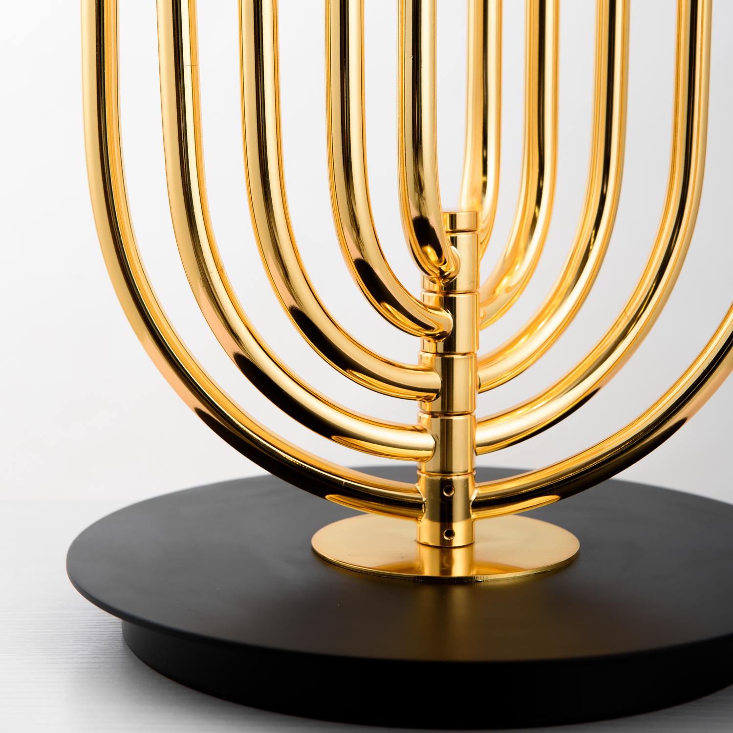 Efektowna podstawa – stabilna czarna baza wzbogacona o złoty okrąg, który podkreśla wyjątkowy styl lampy.