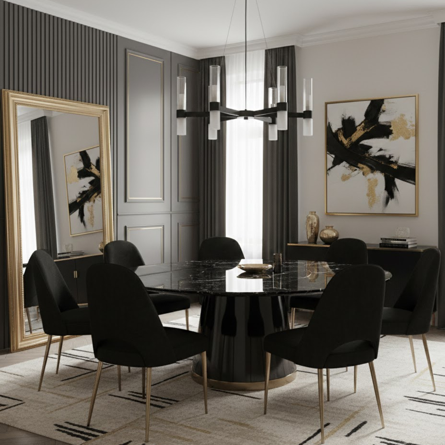 Żyrandol Candela-6 w kolorze czarnym to kwintesencja współczesnego designu, który znajdzie swoje miejsce w przestrzeniach zdominowanych przez minimalizm i nowoczesność. Centralna część lampy skonstruowana jest w formie dysku, z którego wychodzą symetrycznie rozmieszczone ramiona zakończone cylindrycznymi oprawkami na źródła światła. Całość wspiera zestaw eleganckich, czarnych przewodów, które łączą się z solidną podsufitką, również utrzymaną w ciemnej kolorystyce, co stanowi o charakterze tego oświetlenia. Wykończenie w matowej czerni dodaje lampie surowego, ale zarazem wyrafinowanego wyglądu. Styl, w jakim utrzymana jest lampa, idealnie współgra z nowoczesnymi, industrialnymi, a nawet skandynawskimi wnętrzami. Dzięki swojej uniwersalności, może stanowić główny punkt oświetleniowy w salonie, jadalni czy nowoczesnym biurze, zapewniając jednocześnie funkcjonalne jak i dekoracyjne światło. Projektanci skierowali ten model do odbiorców ceniących sobie proste formy, które jednak w subtelny sposób potrafią zdefiniować przestrzeń. Funkcja oświetleniowa łączy się z dekoracyjną, tworząc niepowtarzalny klimat i atmosferę w pomieszczeniu, co czyni ją idealnym wyborem dla osób poszukujących nie tylko źródła światła, ale i elementu, który podkreśli nowoczesny charakter ich domu.