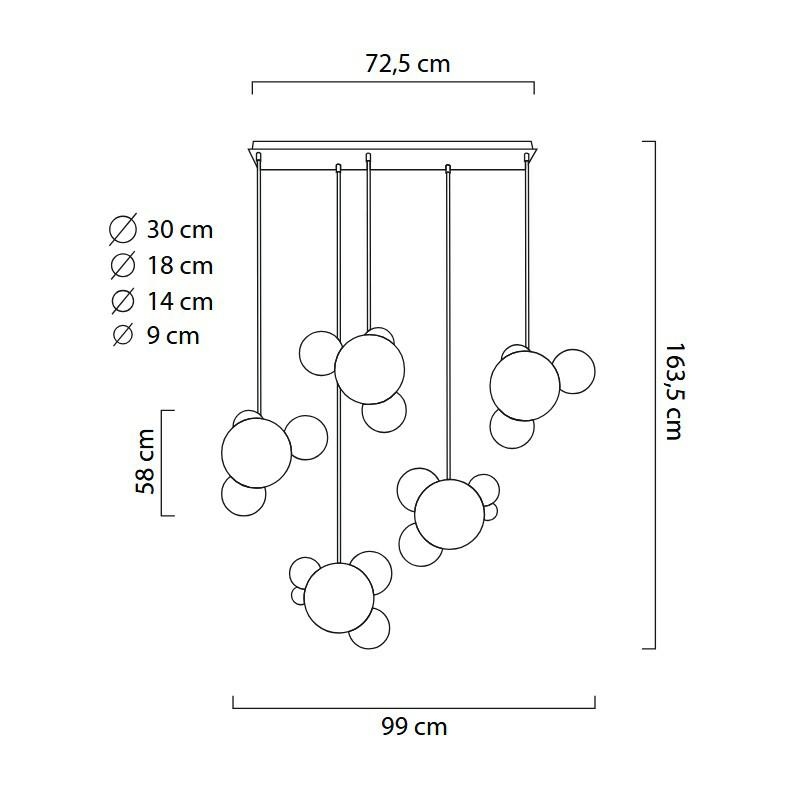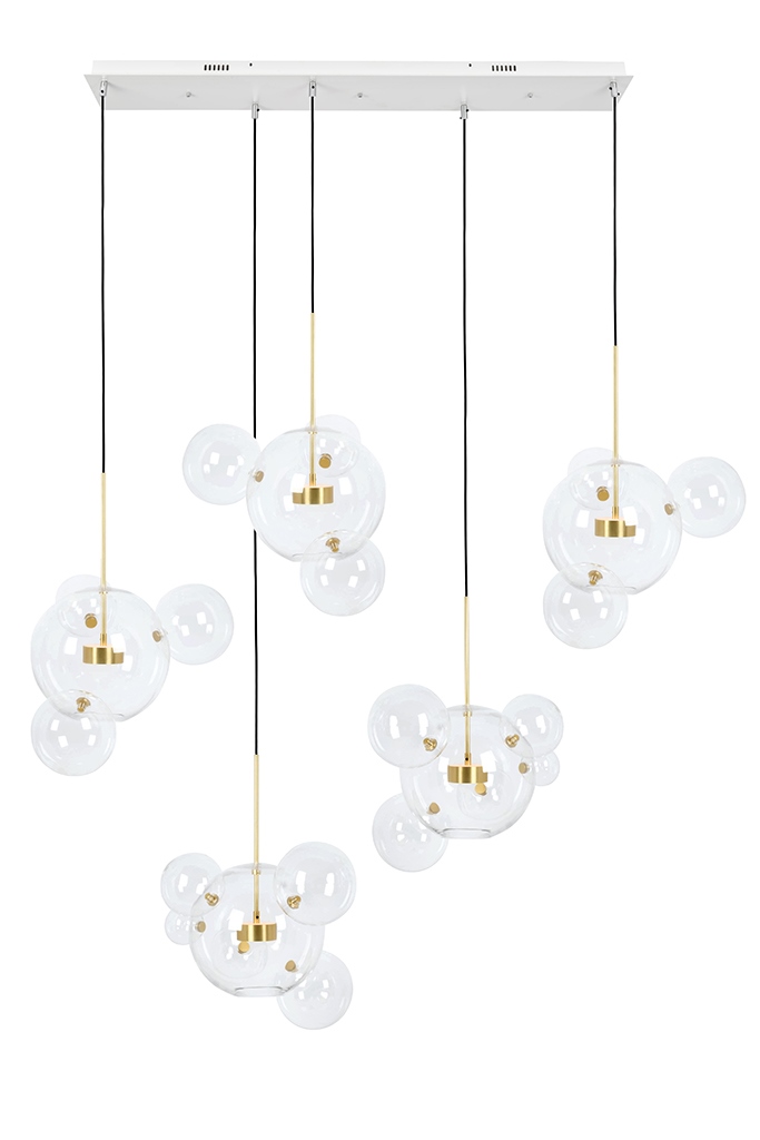 Lampa wisząca Capri Line 5 złota, wykonana z aluminium i szkła, jest kwintesencją współczesnego designu i subtelnej elegancji. Pięć transparentnych kul szklanych, złożonych z mniejszych, okrągłych segmentów, jest zawieszonych na smukłych, złotych prętach, tworząc efektowną kompozycję, która przyciąga wzrok swoją geometryczną harmonią. Każda ze szklanych kulek jest ozdobiona akcentami w złotym kolorze, nadającym całości wyrafinowany charakter. Lampa idealnie komponuje się z nowoczesnymi, minimalistycznymi wnętrzami, jak również tymi o bardziej klasycznym zacięciu, gdzie może stanowić główny element dekoracyjny. Jest to wybór dla osób ceniących innowacyjne rozwiązania oświetleniowe, które mają za zadanie nie tylko rozświetlać przestrzeń, ale i wprowadzać do niej element luksusu i artystycznego wyrazu.