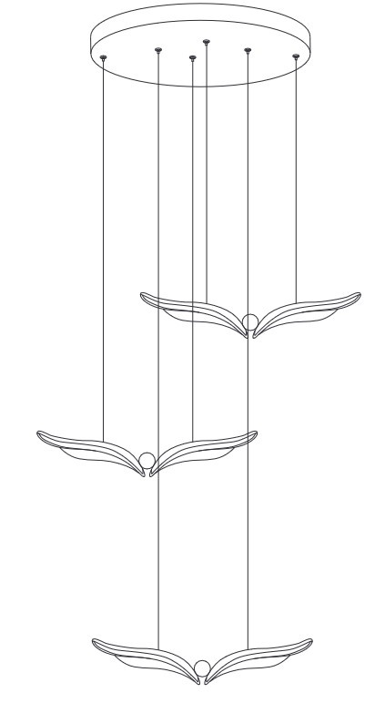Ich opływowe, organiczne kształty oraz matowe, jasne spody "skrzydeł", z których wydobywa się światło, tworzą efektowną instalację świetlną.