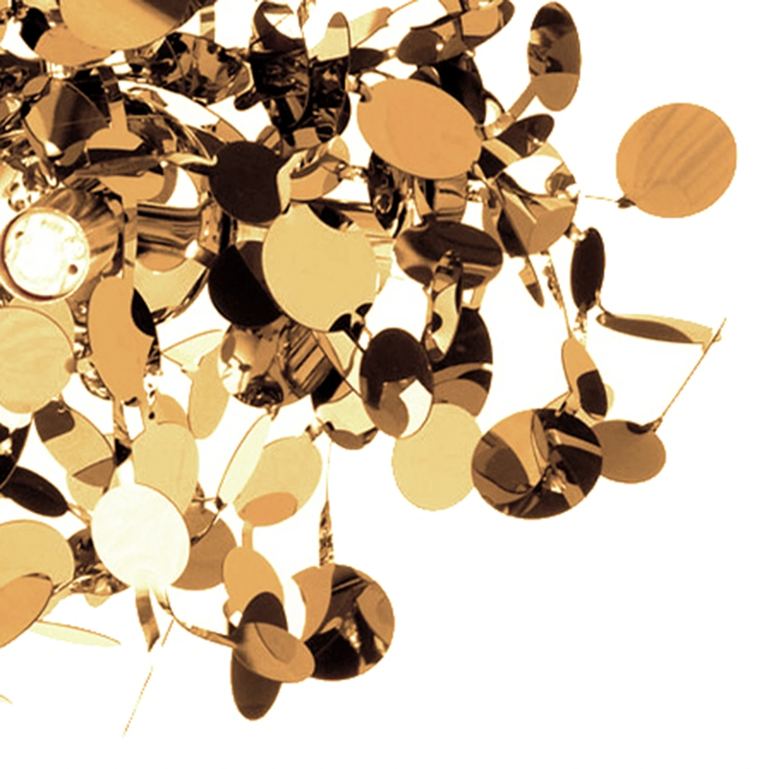 Przedstawiamy lampę wiszącą Monetti w kolorze złotym o średnicy 40 cm, która jest kwintesencją designu Step Into Design. Zapierająca dech w piersiach kompozycja składa się z mnóstwa złotych dysków, ułożonych w dynamicznej, nieregularnej formie, która przypomina delikatny taniec złotych liści w promieniach słońca. Każdy dysk, finezyjnie zawieszony na złotych prętach, łagodnie odbija światło, tworząc w pomieszczeniu atmosferę luksusu i elegancji. Styl nowoczesny tej lampy idealnie wpisuje się w estetykę nowoczesnych salonów, jadalni czy ekskluzywnych biur. Dzięki swej dekoracyjności, lampa ta może pełnić rolę centralnego punktu oświetleniowego, jednocześnie będąc wyrafinowaną ozdobą przestrzeni. Jest to wybór idealny dla osób ceniących nowoczesny design i artystyczne akcenty w swoim otoczeniu. Subtelne światło emitowane przez lampę Monetti tworzy ciepłą i przytulną atmosferę, sprzyjającą relaksowi i spędzaniu czasu w gronie najbliższych.