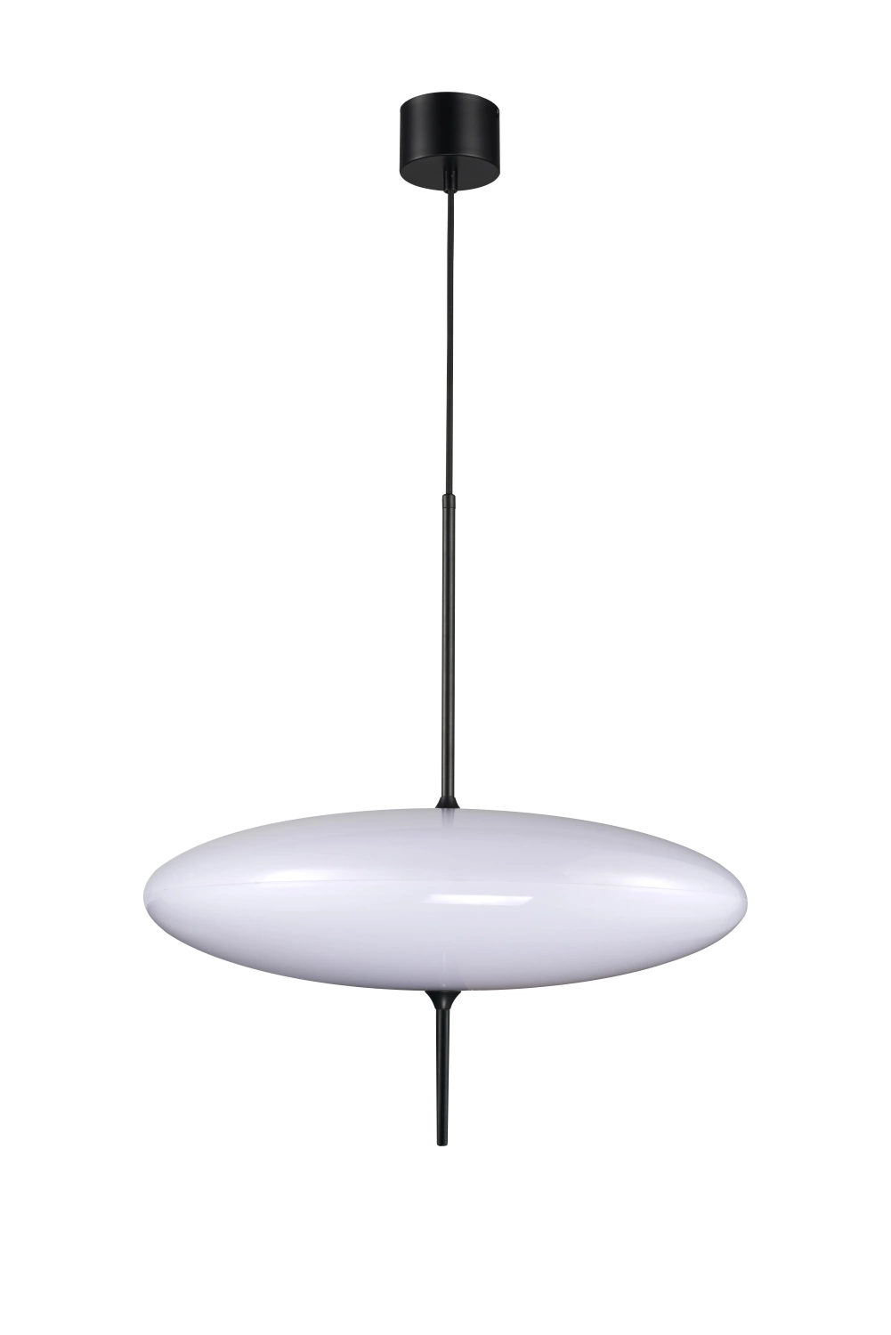 Lampa wisząca PIATTO to nowoczesne oświetlenie o dużym, eleganckim kloszu w kształcie spłaszczonej elipsy. Biały kolor nadaje wnętrzu lekkości i optycznie powiększa przestrzeń, a kontrastujący czarny detal dodaje jej charakteru. Lampa zapewnia równomierne rozproszenie światła i idealnie sprawdza się jako główne oświetlenie pomieszczenia.