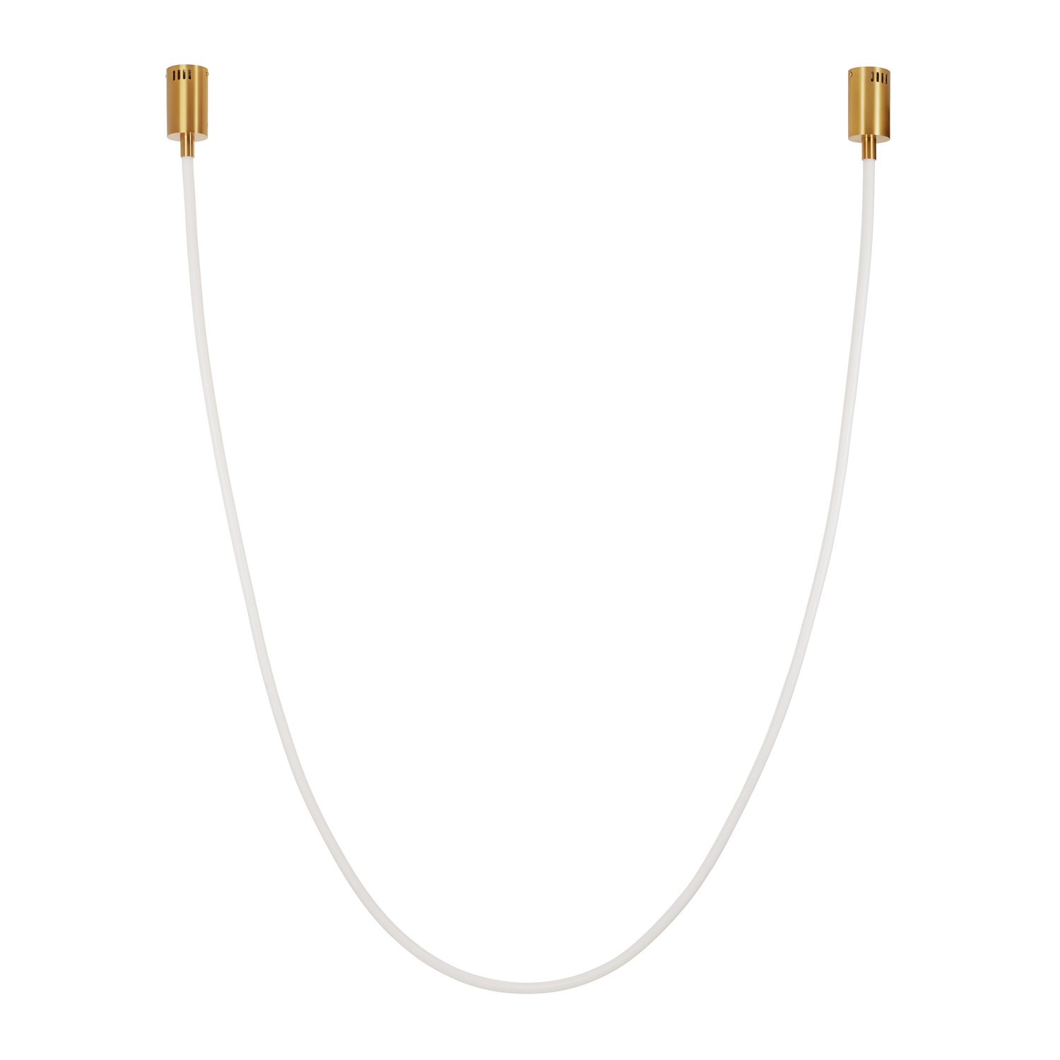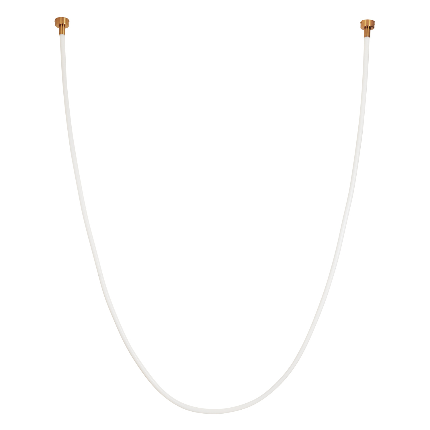 Przewód świetlny o szerokości 2,5 cm montowany jest do sufitu za pomocą eleganckich, metalowych uchwytów w kolorze złotym.