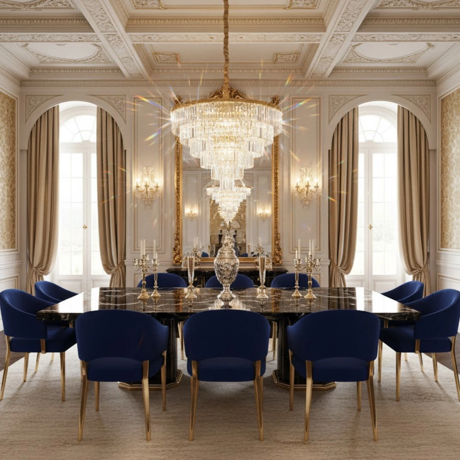 Luksusowa oprawa rozświetli wnętrza w stylu glamour, nadając im wyjątkowy blask.