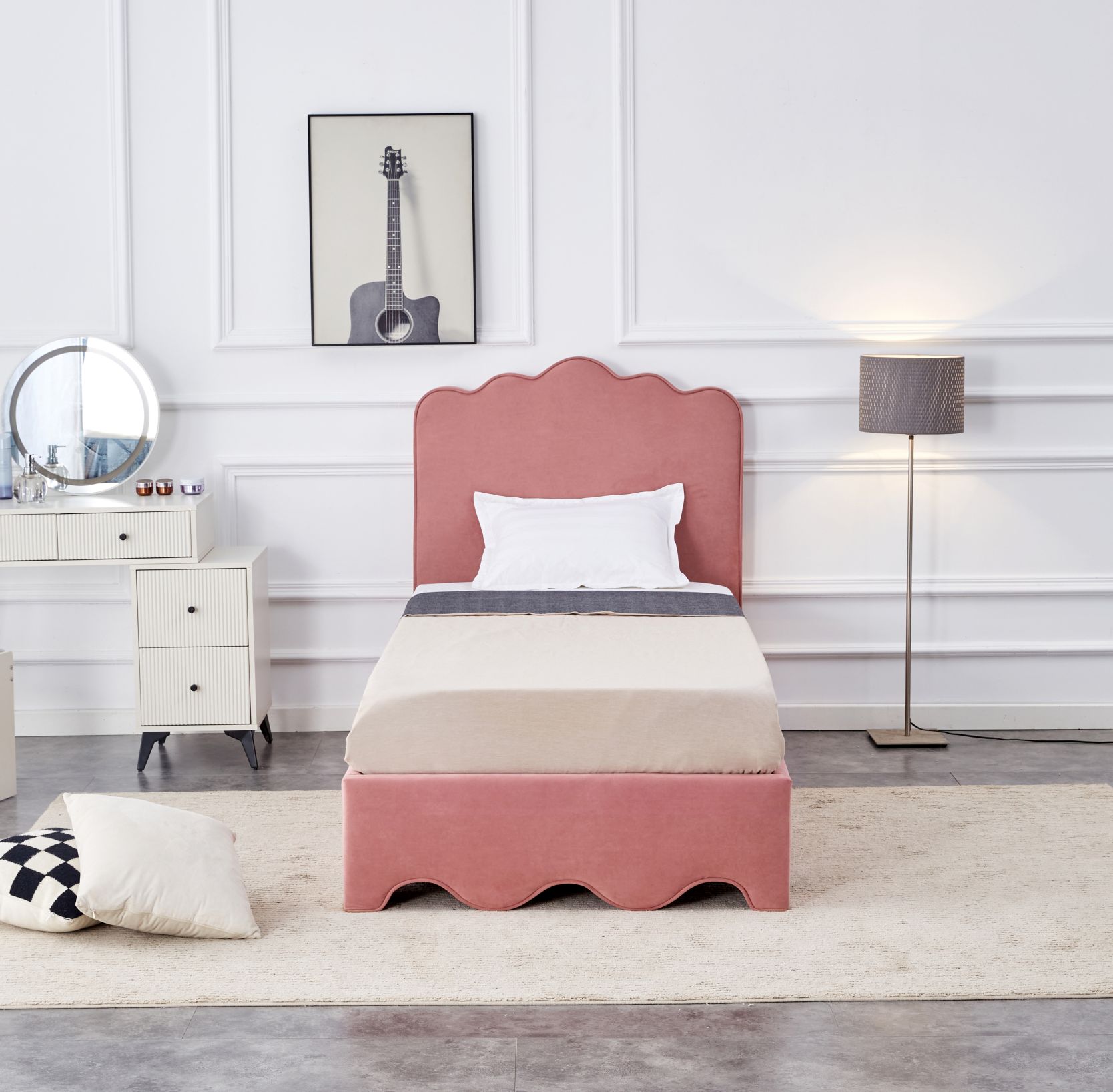 Łóżko wykonano z materiału: różowy #52 ,* łóżko bez materaca, w opcji materac POLARIS 90 lub SYRIUSZ 90