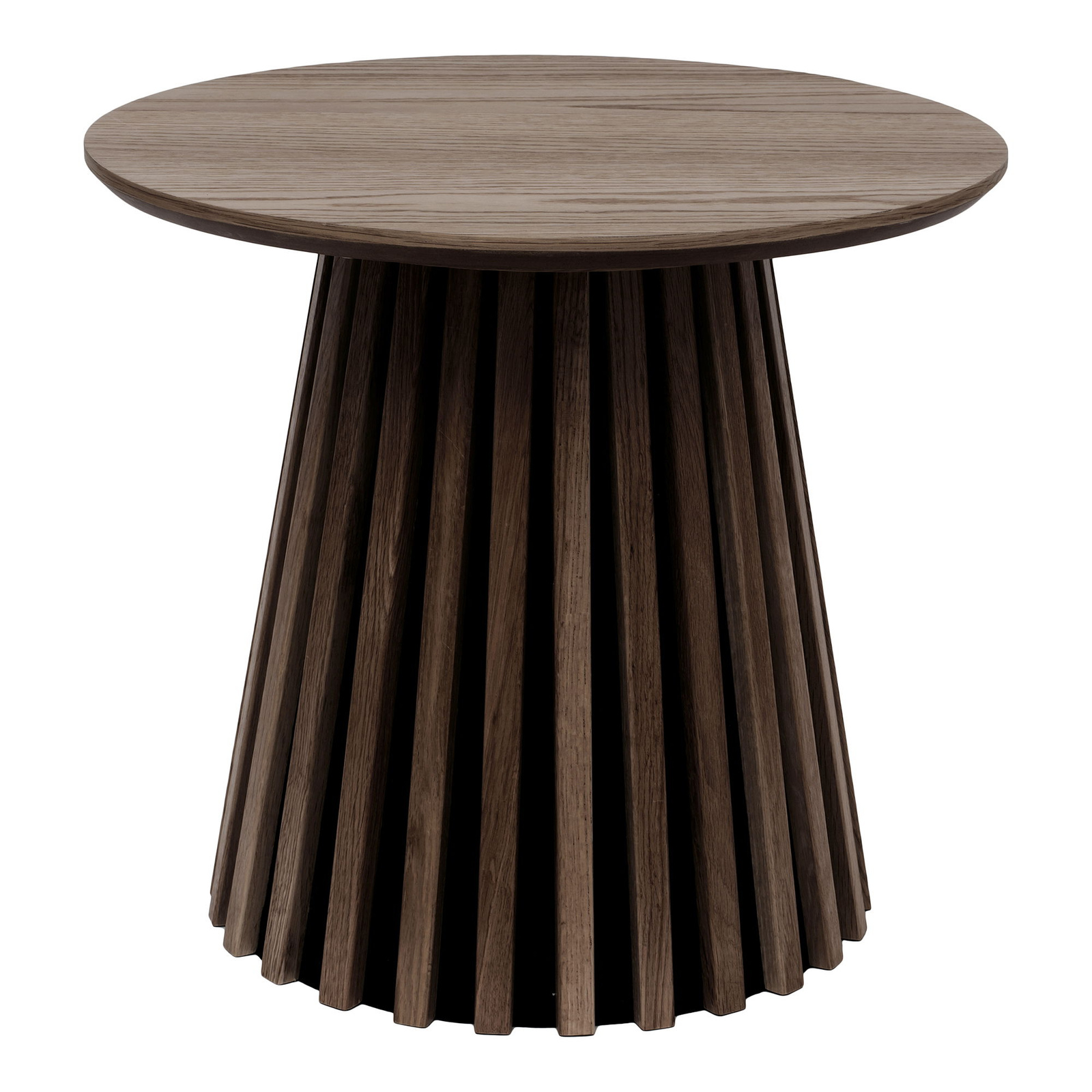 Osaka stolik kawowy okrągły dymiony marki House Nordic to kompaktowy stolik do salonu o średnicy 50 cm i wysokości 45 cm, idealny jako mały stolik kawowy lub stolik pomocniczy przy sofie. Okrągły blat w fornirze dębowym o dymionym wybarwieniu i stabilna pojedyncza noga tworzą nowoczesny stolik kawowy w skandynawskim stylu.