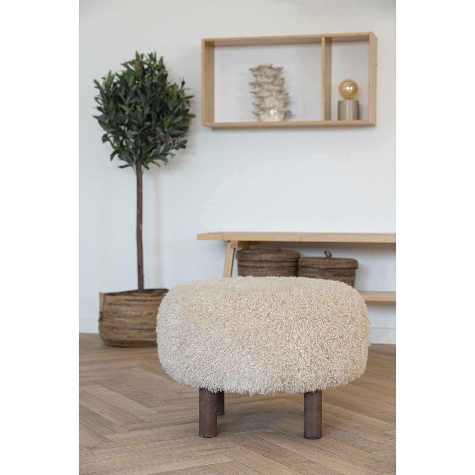 Solidne, cztery nogi wykonane z naturalnego drewna sosnowego podkreślają lekkość i minimalistyczny charakter pufy Inverness. Jasne, naturalne wybarwienie drewna doskonale harmonizuje z białym siedziskiem, tworząc spójną, nowoczesną całość. Taka stylistyka świetnie wpisuje się w aranżacje w duchu skandynawskim lub boho, dodając wnętrzu świeżości i swobody. Dzięki jakościowym materiałom pufa utrzymuje stabilność nawet przy maksymalnym obciążeniu do 110 kg.