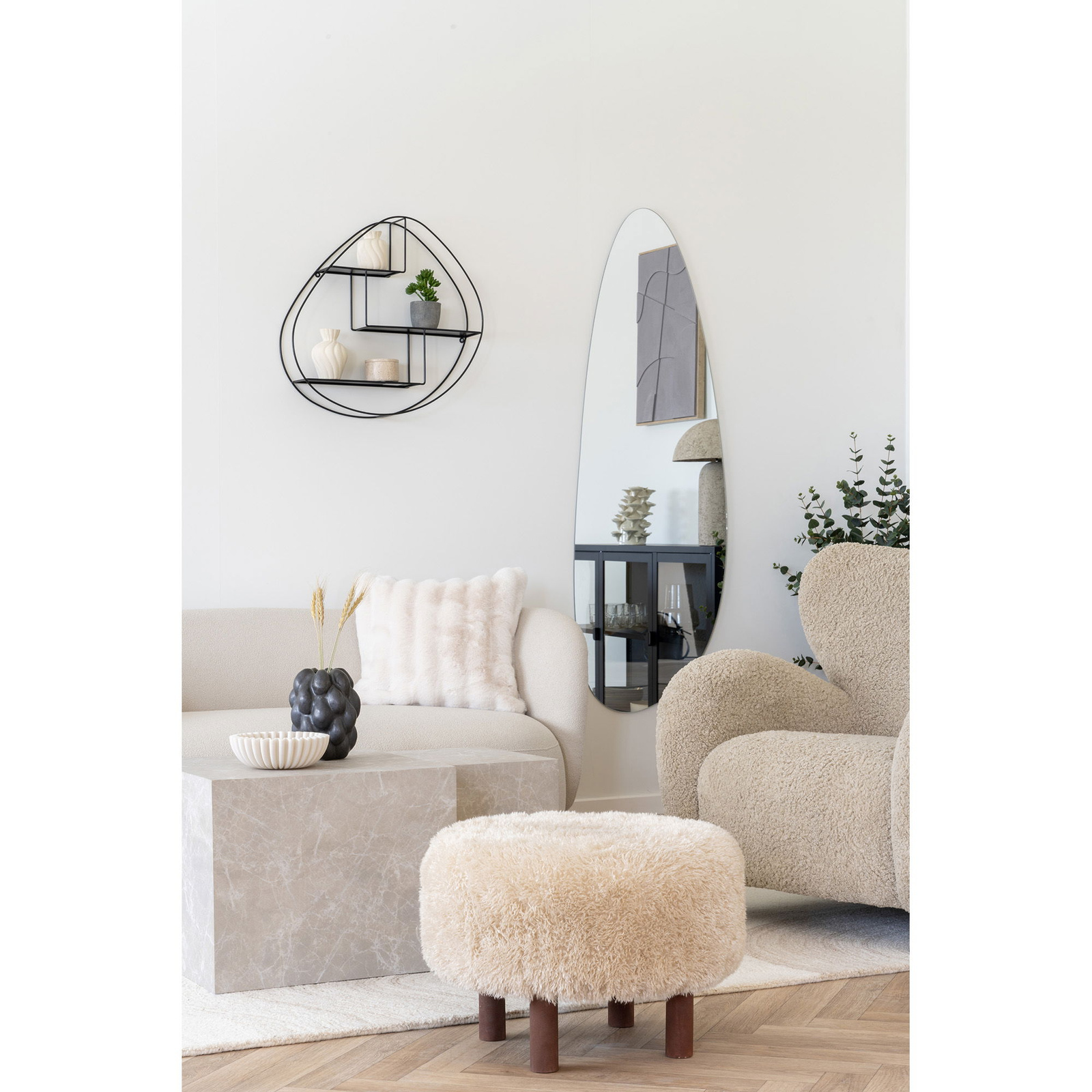 Wyjątkowo miękka, futrzana tapicerka sprawia, że każdy kontakt z pufą Inverness to czysta przyjemność. Siedzisko obszyte białą, puszystą tkaniną zaprasza do odpoczynku – czy to podczas czytania książki w salonie, czy szybkiego przebrania butów w przedpokoju. Niska waga (zaledwie 3,5 kg) pozwala na łatwe przestawianie pufy tam, gdzie akurat jej potrzebujesz. To idealny wybór dla osób szukających funkcjonalnego i jednocześnie dekoracyjnego mebla o wyrazistej fakturze.
