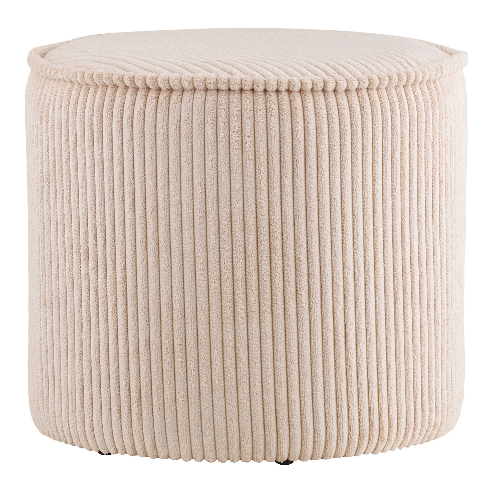 Pufa Taupo marki House Nordic to okrągła, beżowa pufa sztruksowa o wysokości 35 cm i średnicy 40 cm, idealna jako dodatkowe siedzisko do salonu, sypialni, przedpokoju lub pokoju młodzieżowego. Miękkie siedzisko wypełnione pianką tapicerską oraz aksamitnie wykończona tkanina sztruksowa zapewniają wygodę i przytulny efekt we wnętrzu.