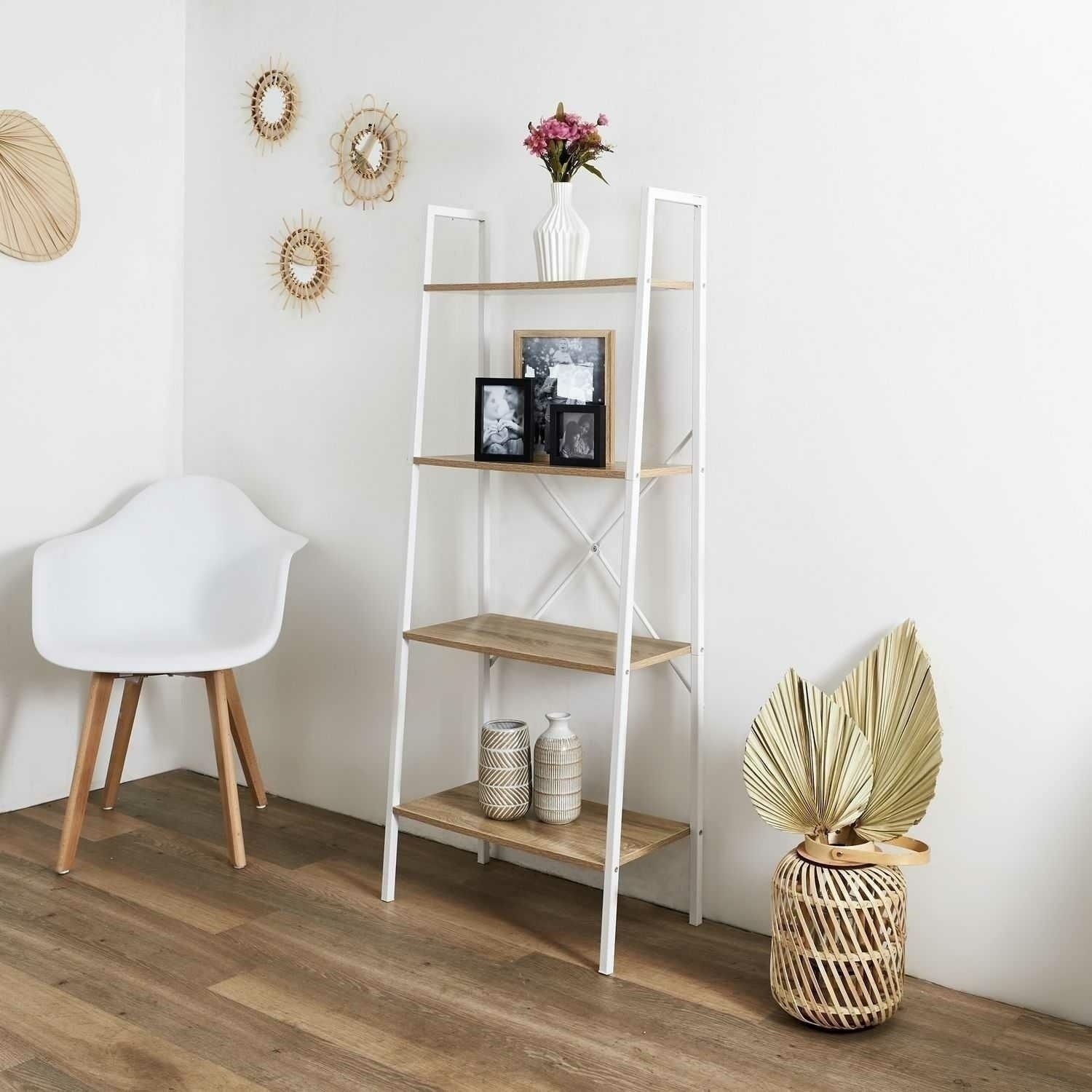 Regał Cilyan L biały od Intesi to kwintesencja funkcjonalności ubrana w minimalistyczne szaty. Jego konstrukcja składa się z czterech poziomych półek o naturalnym odcieniu drewna, które wizualnie ocieplają nowoczesną formę mebla. Każda z półek wsparta jest na białych, metalowych nogach, tworzących stabilną i trwałą ramę. Delikatne krzyżowanie nóg dodaje elegancji, a także zapewnia dodatkową wytrzymałość konstrukcji. Mebel ten wyróżnia się prostą, geometryczną formą, która doskonale komponuje się zarówno w nowoczesnych, jak i bardziej tradycyjnych przestrzeniach. Idealnie odnajdzie się w przestronnym salonie, domowym biurze czy minimalistycznej sypialni, oferując funkcjonalne miejsce do przechowywania książek, dekoracji czy dokumentów. Regał Cilyan L jest szczególnie polecany dla osób ceniących sobie przejrzystość i porządek, dając możliwość wyeksponowania najcenniejszych przedmiotów, jednocześnie nie przytłaczając przestrzeni. Neutralna kolorystyka i lekkość formy sprawiają, że mebel ten doskonale wpisuje się w potrzeby zarówno młodszych użytkowników, jak i miłośników ponadczasowego designu.