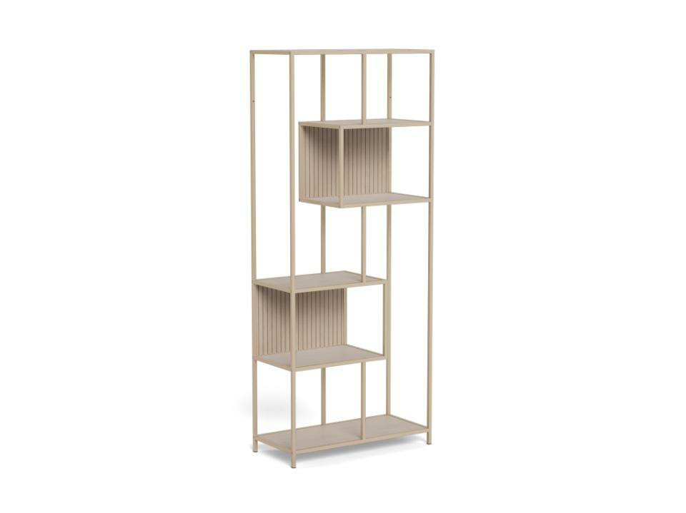 Regał loftowy Seaford II marki Actona to wysoki, beżowy regał na książki o wysokości 185 cm i szerokości 77 cm, idealny do nowoczesnego salonu lub pokoju młodzieżowego. Stabilna stalowa rama, pięć praktycznych półek z wytrzymałą melaminą i subtelne, półmatowe wykończenie tworzą funkcjonalny mebel do przechowywania i ekspozycji ulubionych przedmiotów.