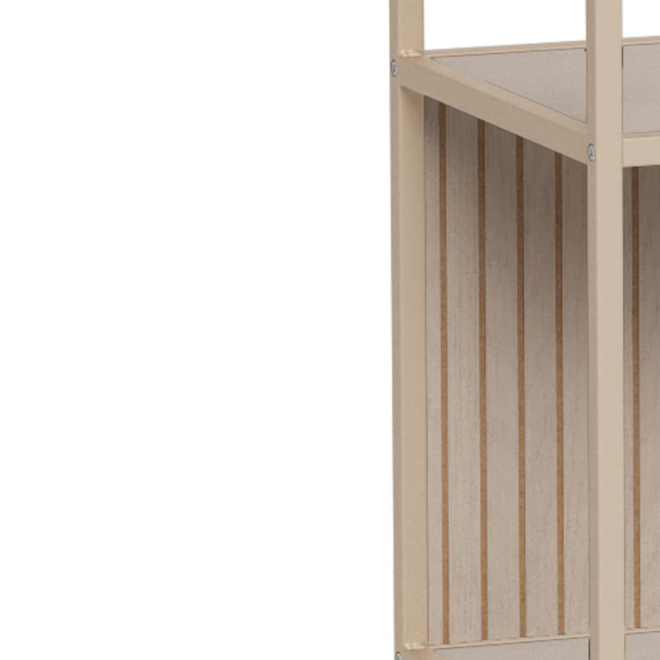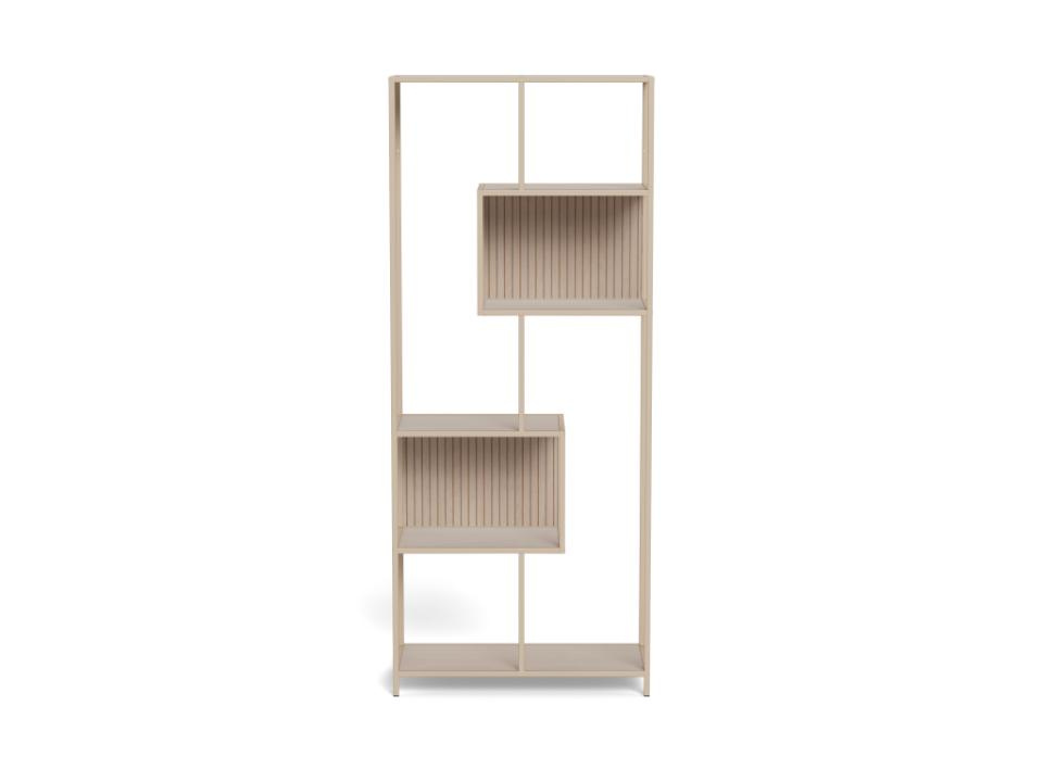 Neutralny beżowy kolor regału Seaford II harmonijnie współgra z jasnymi i ciemniejszymi ścianami, drewnianą podłogą czy betonem architektonicznym. Na szerokości 77 cm zyskujesz sporo miejsca na domową biblioteczkę, kolekcję ramek ze zdjęciami lub ozdobne organizery. Regał świetnie sprawdzi się jako regał do salonu, ale też w pokoju młodzieżowym – pomieści książki, gry, segregatory i szkolne przybory.