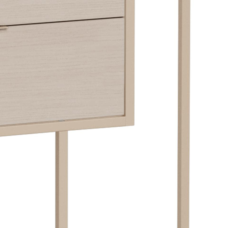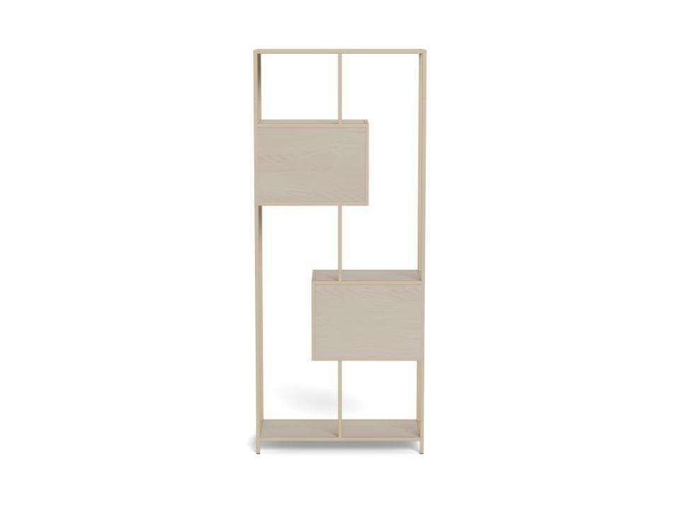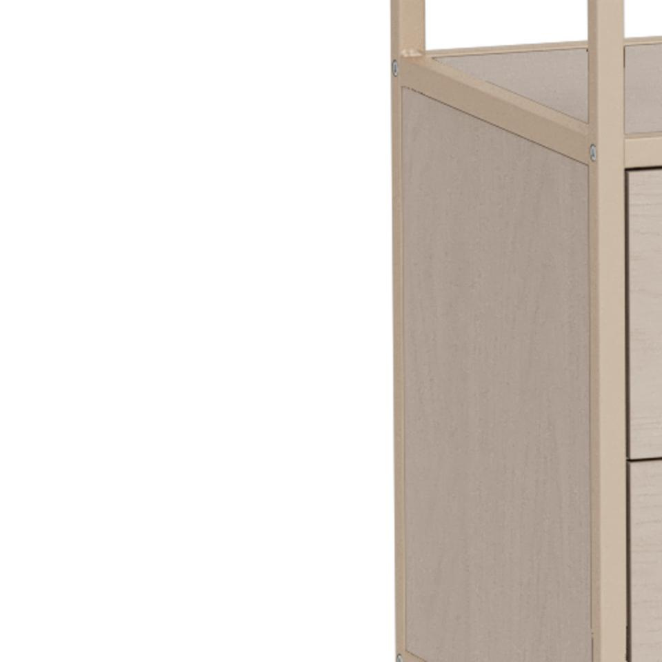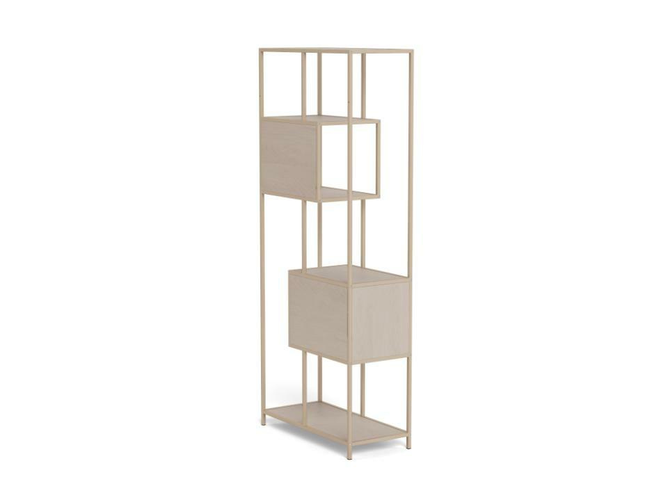 Regał na książki Seaford II marki Actona to wysoki, loftowy regał o wymiarach 185×77×35 cm, wykonany z połączenia beżowej stali i wytrzymałej płyty z powłoką melaminową. Cztery otwarte półki i dwie praktyczne szuflady tworzą funkcjonalną przestrzeń do przechowywania książek, dekoracji i drobiazgów w salonie, przedpokoju lub pokoju młodzieżowym.